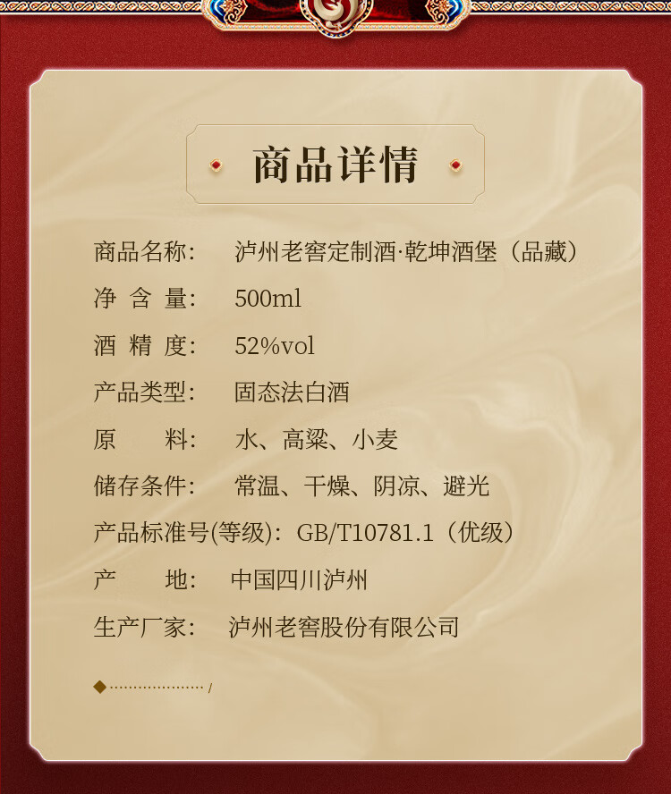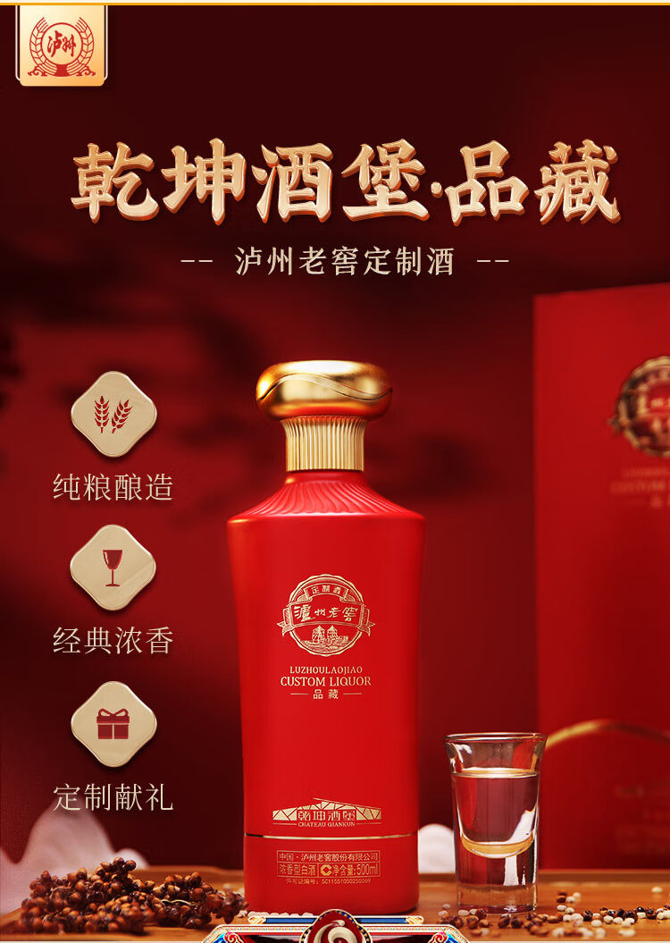 泸州老窖 乾坤酒堡 品藏 浓香型白酒 52度 500ml 单瓶装 (送礼婚宴用酒)