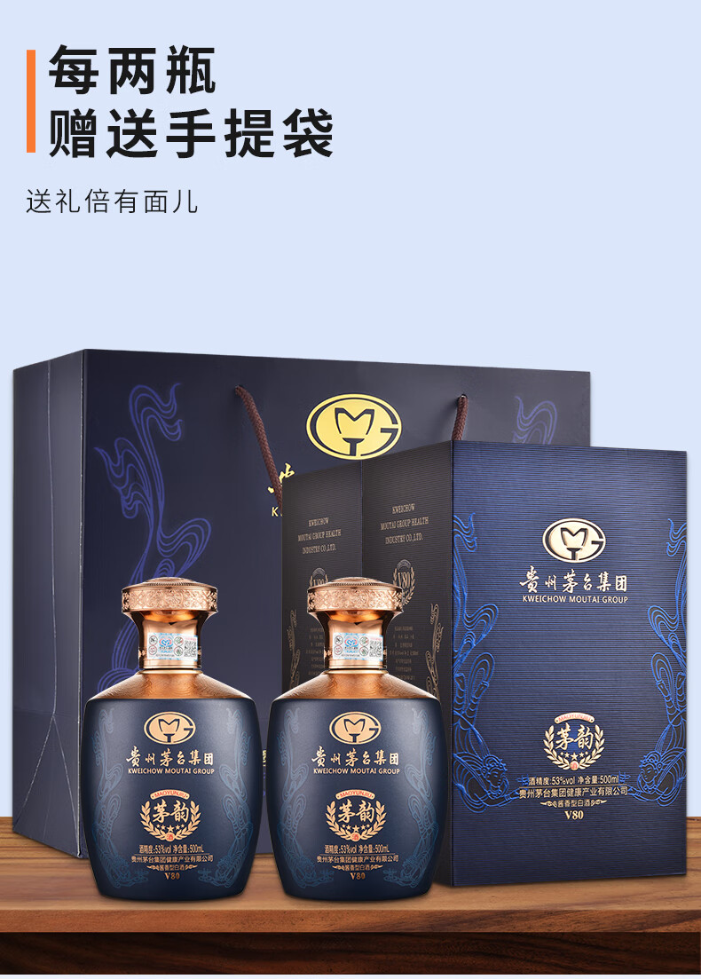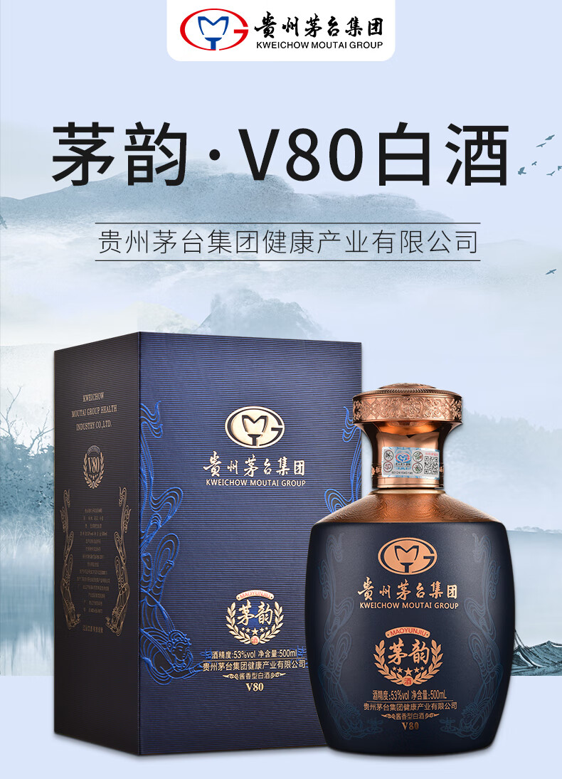 茅台集团 茅韵V80 53度酱香型白酒 500ml*1瓶 飞天仕女图礼盒