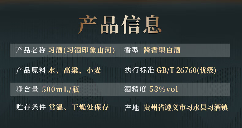 习酒 印象山河 酱香型白酒 53度 500ml*1瓶 单瓶装 商务送礼
