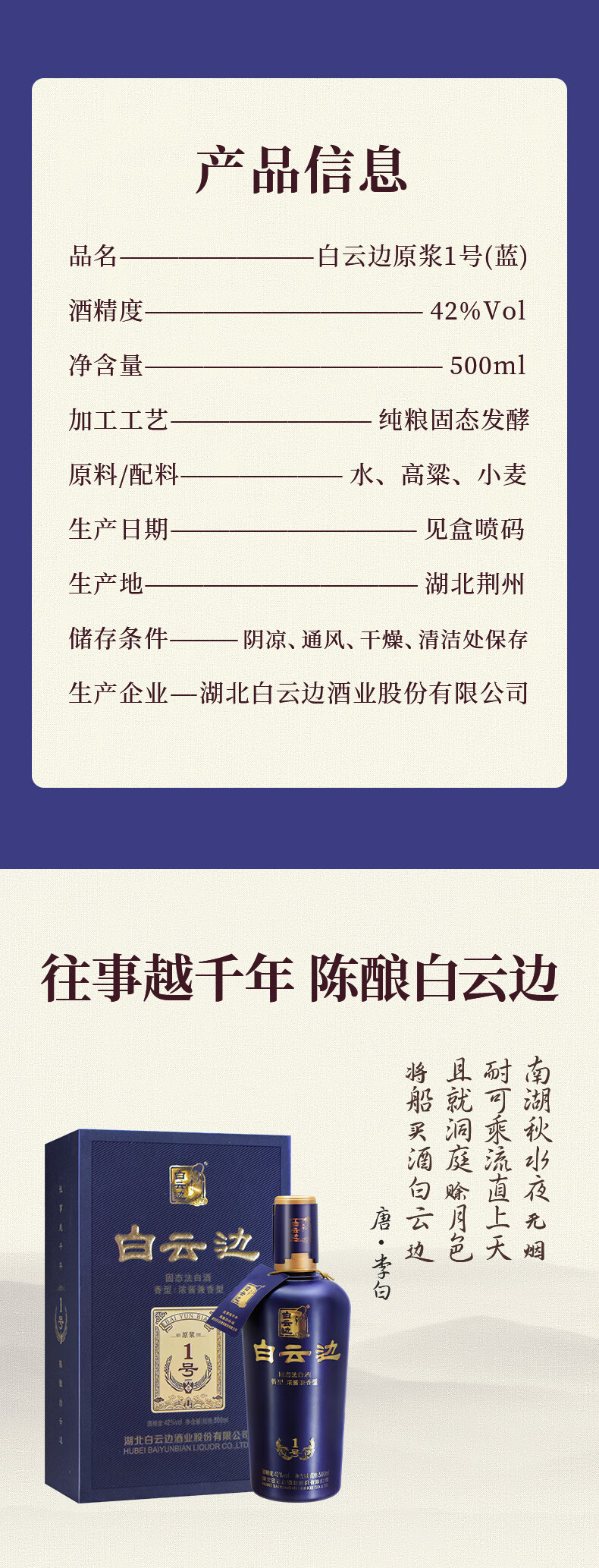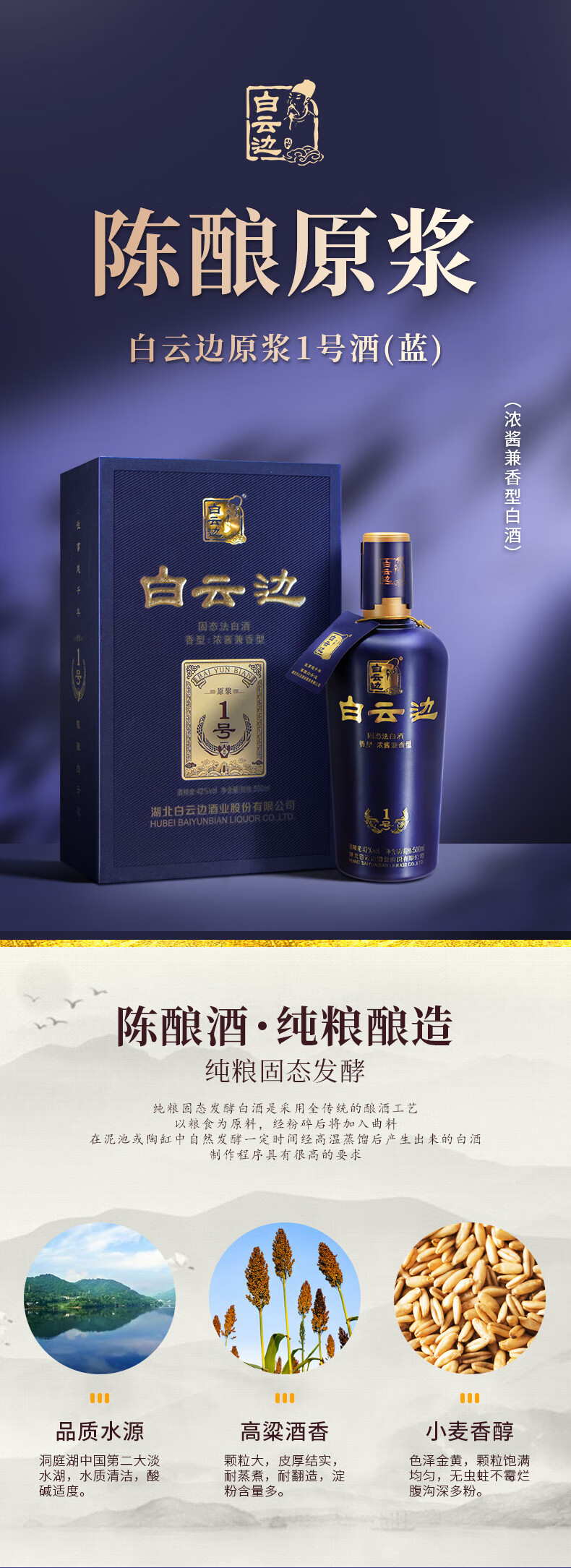 白云边原浆1号(蓝标)浓酱兼香型纯粮酿造白酒整箱42度500ml*6瓶