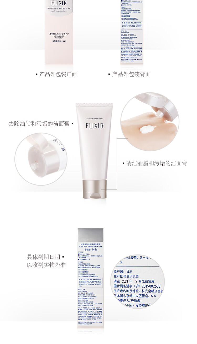 怡丽丝尔纯肌净澈洁面膏洗面奶145g 美白保湿温和泡沫