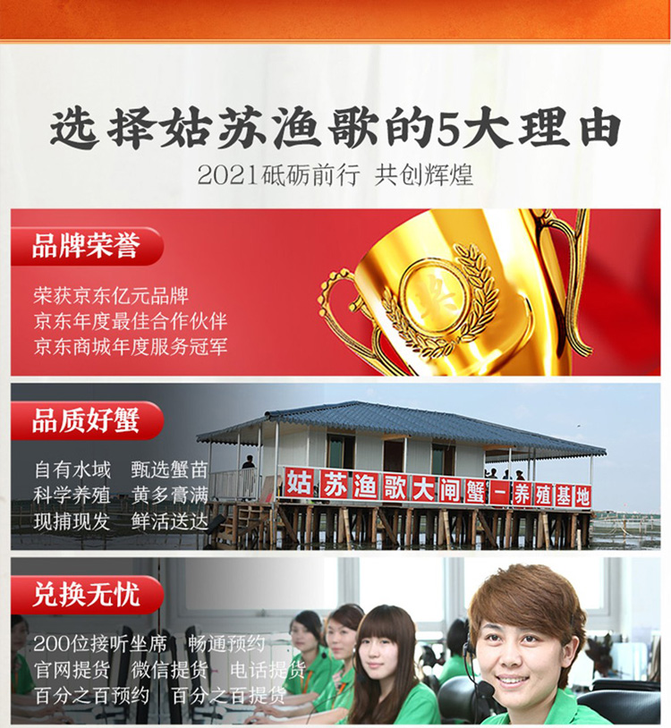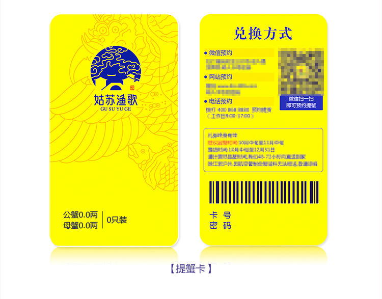 【礼券】 姑苏渔歌大闸蟹礼券3988型公4.5两 母3.5两4对8只螃蟹海鲜水产蟹卡礼盒购物卡中秋秒杀送礼团购定制