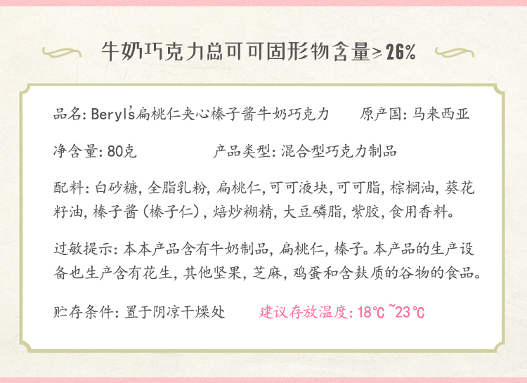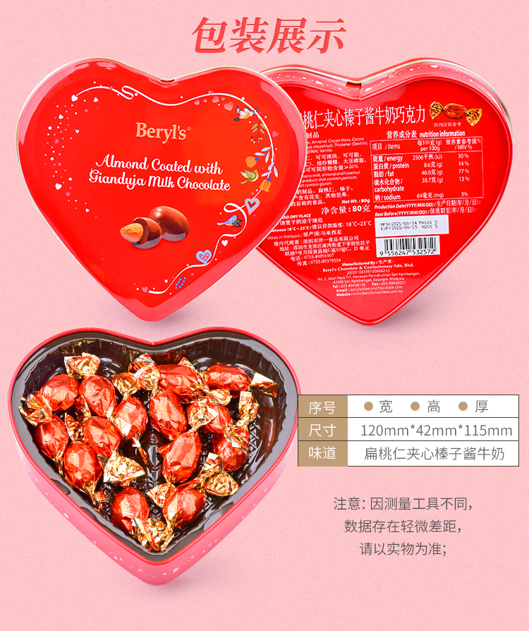 倍乐思(Beryl's)果仁夹心牛奶巧克力礼盒80g 马来西亚进口零食 生日儿童节礼物
