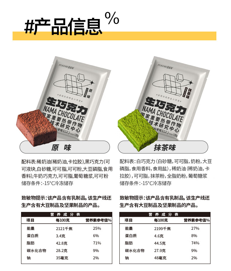 普莱赞生巧克力牛奶巧克力可可脂甜品热农科院零食120g原味