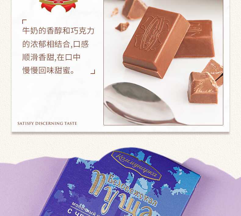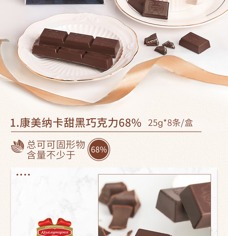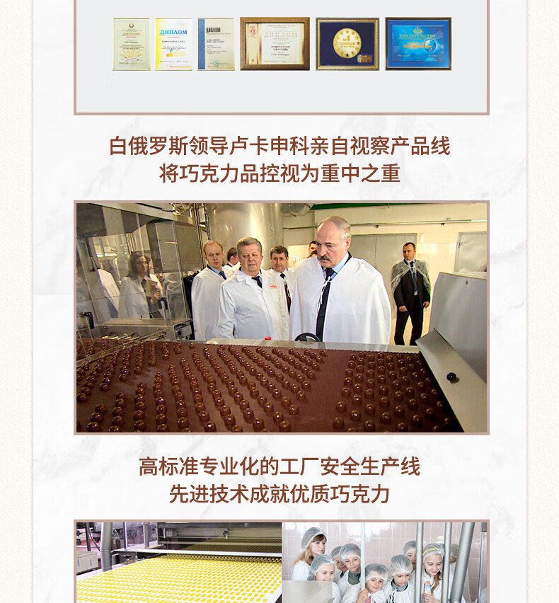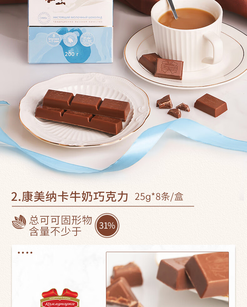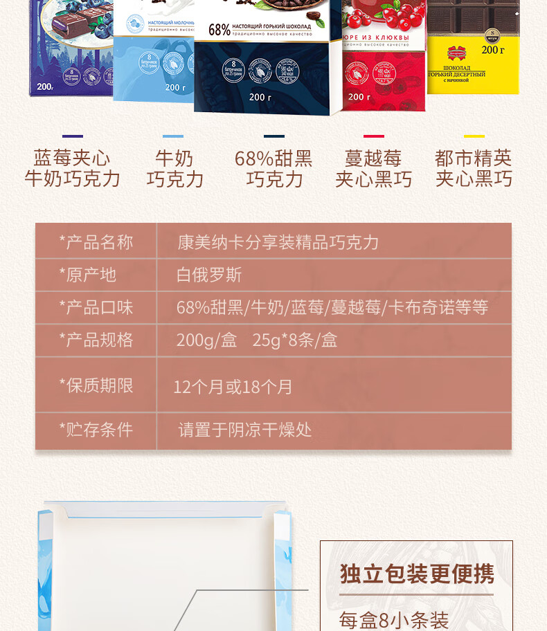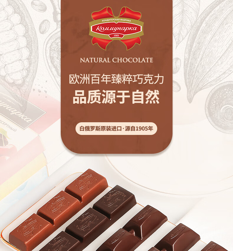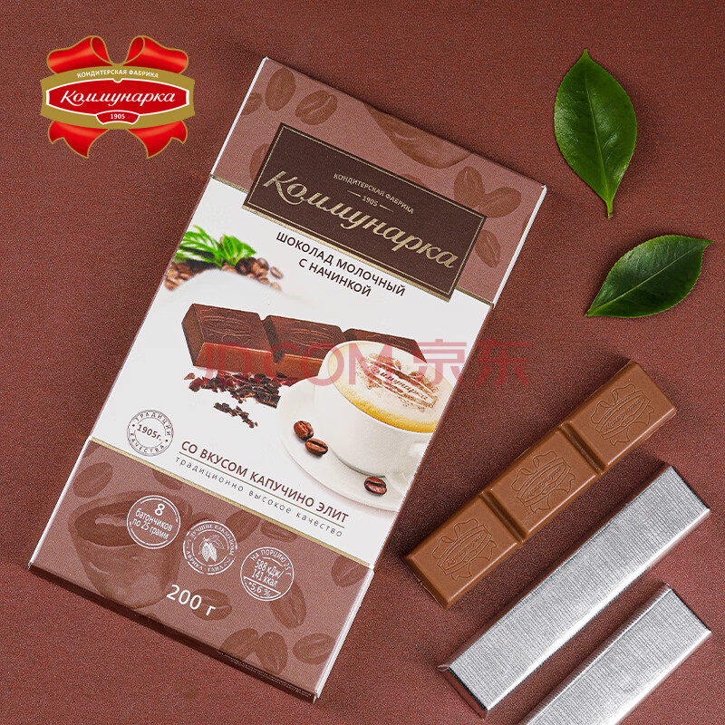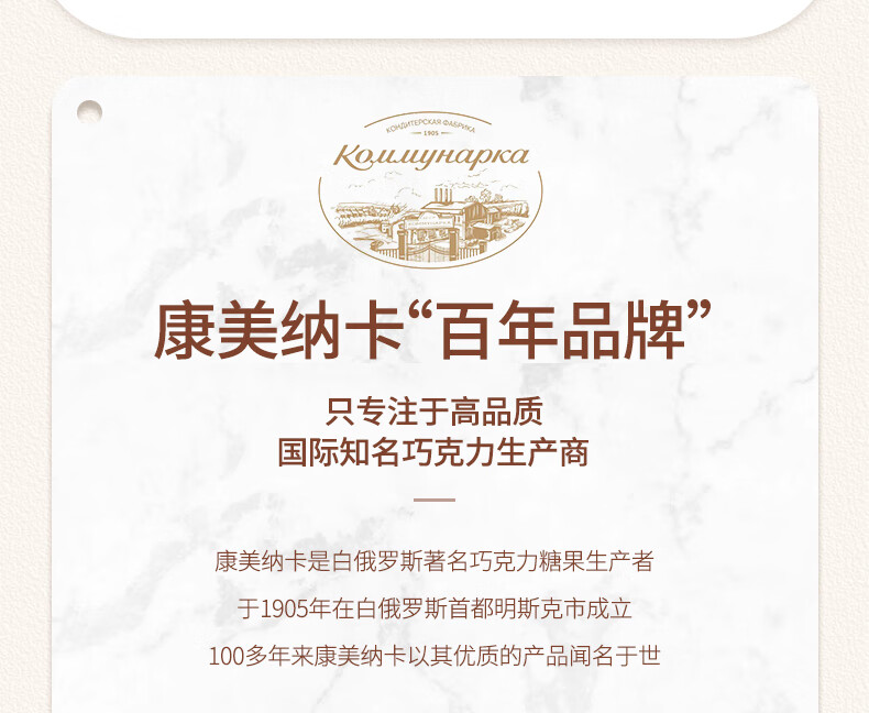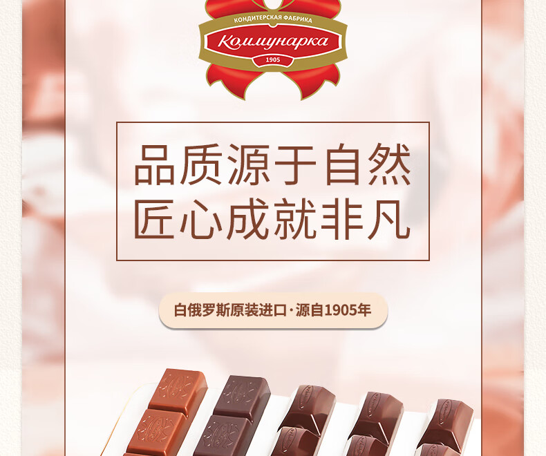 康美纳卡白俄罗斯进口 精选丝滑可可脂卡布奇诺夹心牛奶巧克力 200g