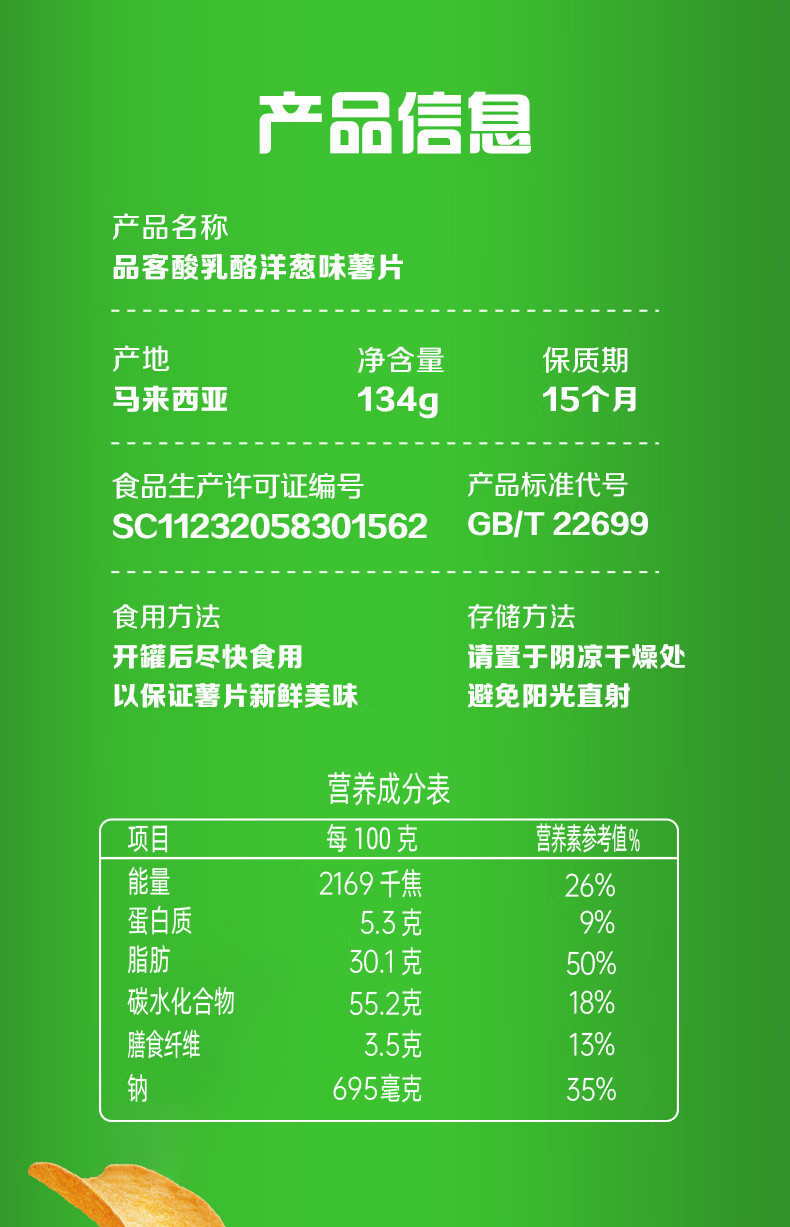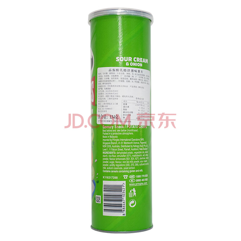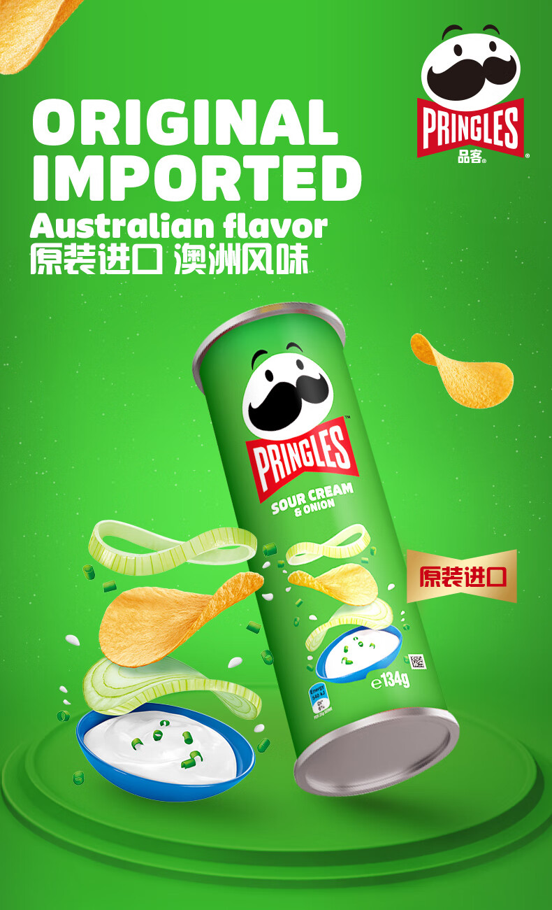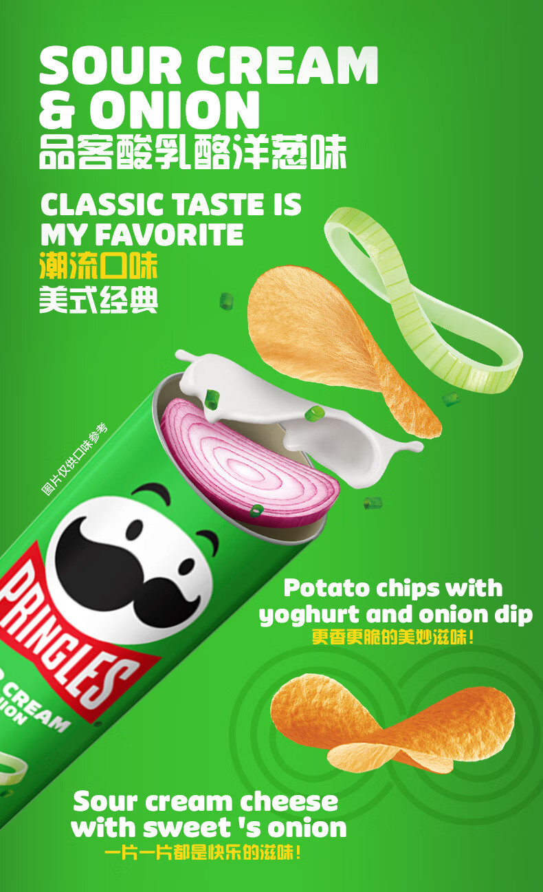 品客(Pringles)酸乳酪洋葱味薯片 134g 马来西亚原装进口经典口味 澳洲原版配方