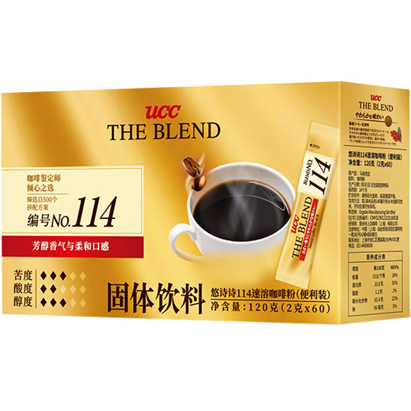 悠诗诗(UCC) 114冻干黑咖啡速溶咖啡粉单杯装120g(2g*60条) 马来西亚进口