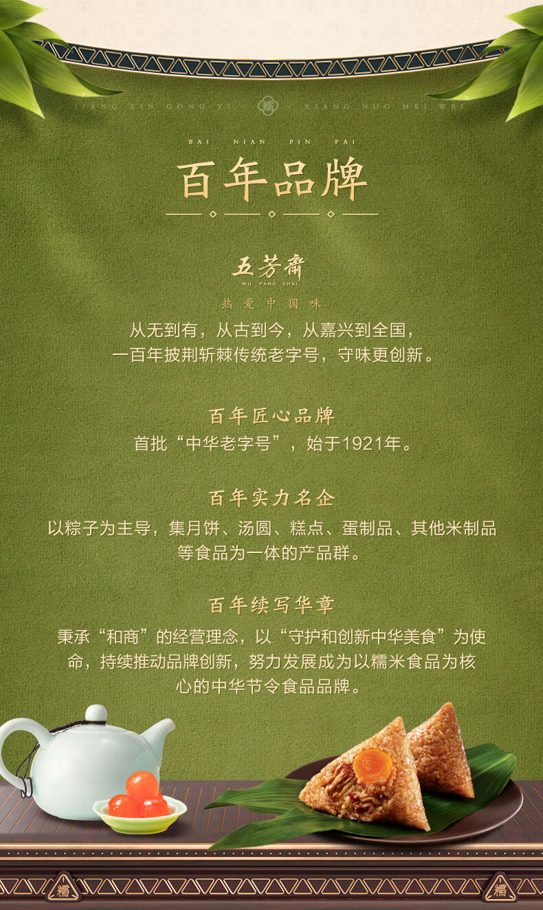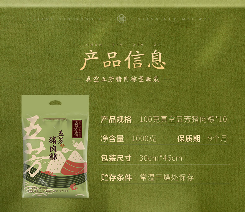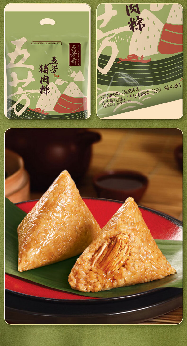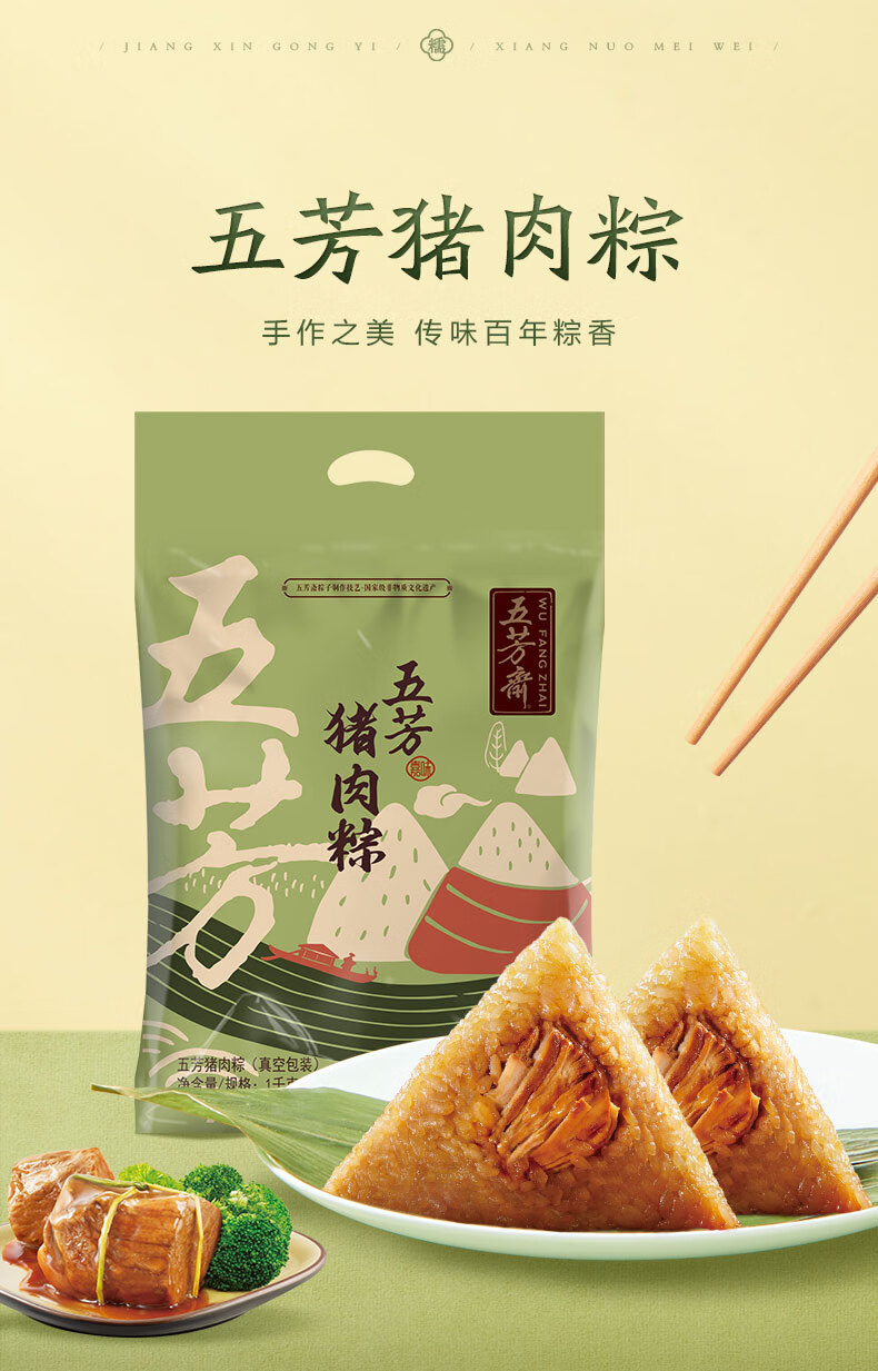 五芳斋 粽子 嘉兴粽子特产 100g*10只装端午大礼包 美味猪肉粽1000g