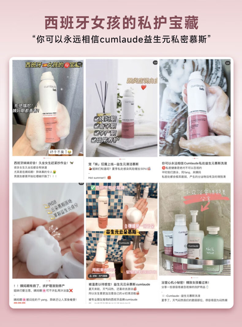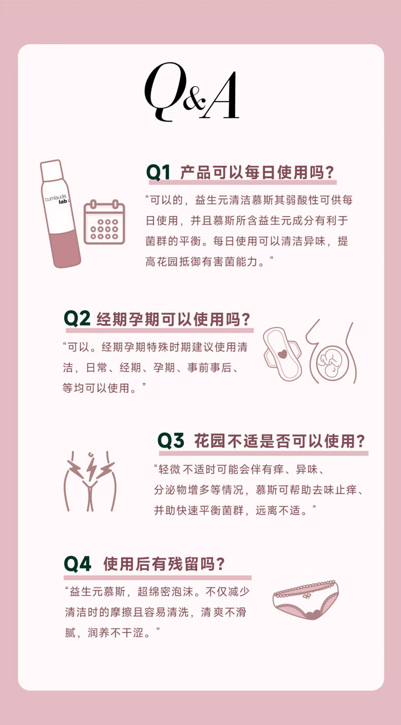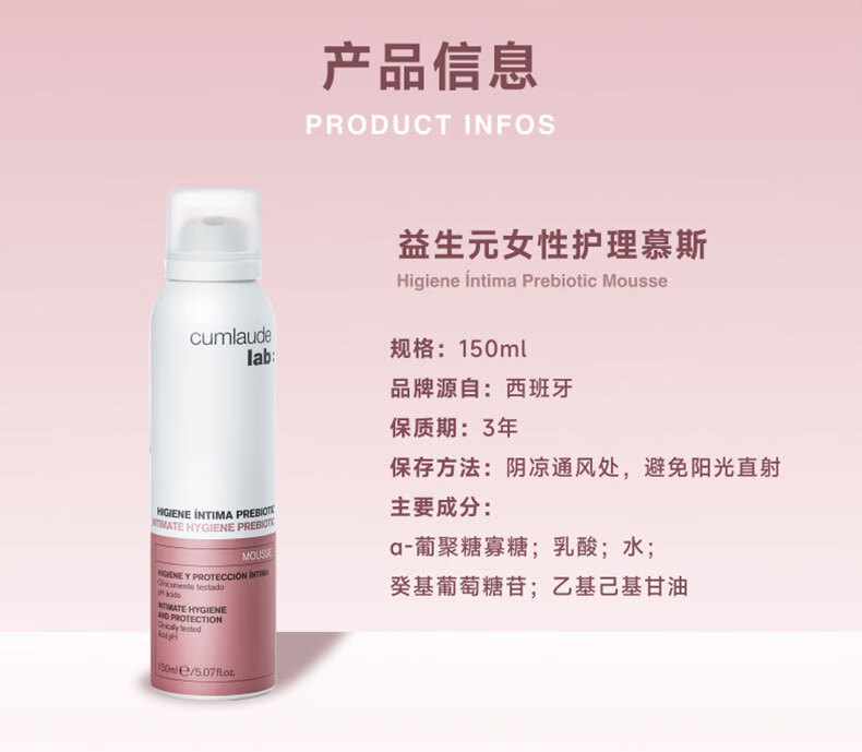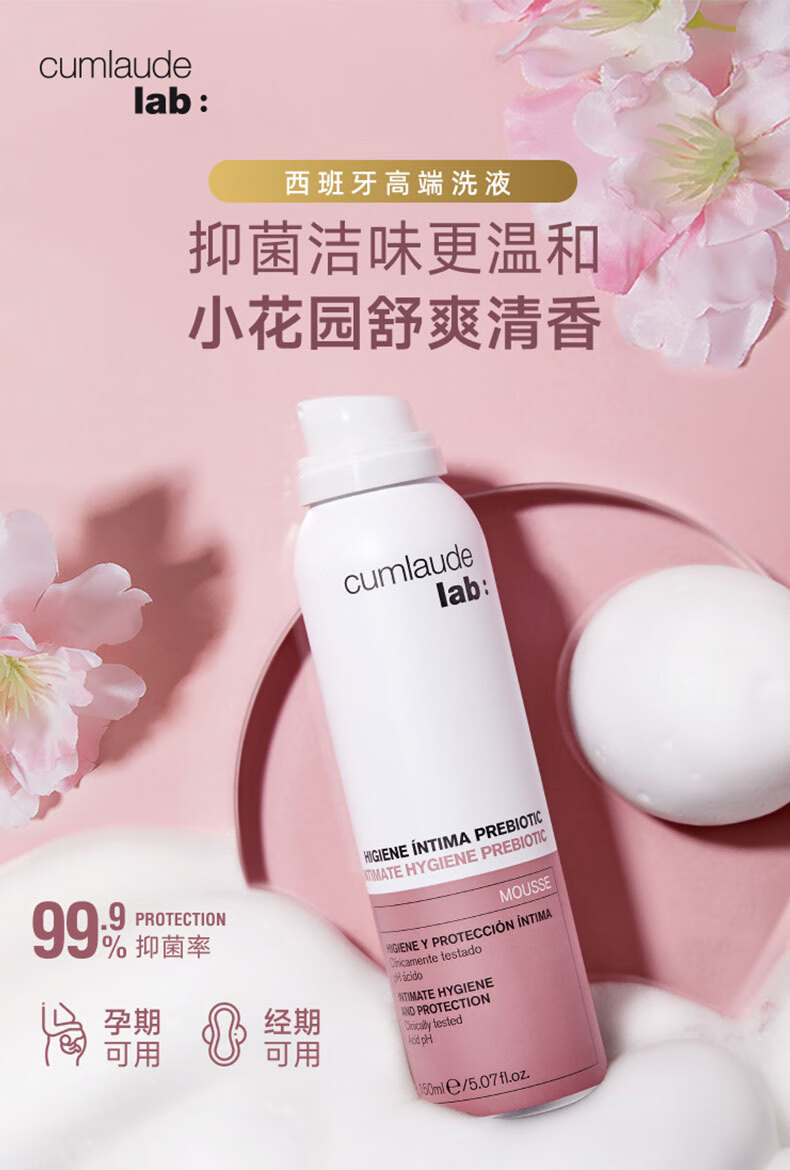 CUMLAUDE珂蔓朵益生元私处清洁慕斯150ml 女性私密处护理液外阴保养清洗液