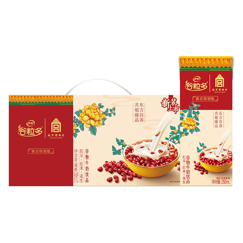 伊利谷粒多 红谷牛奶饮品 250ml*12盒/箱 红豆+红米+花生 礼盒装