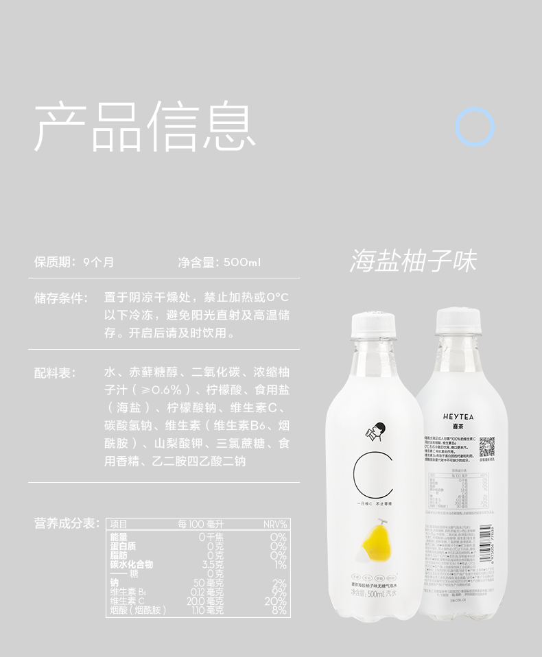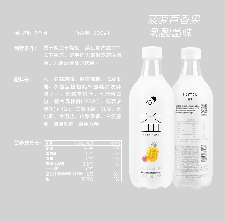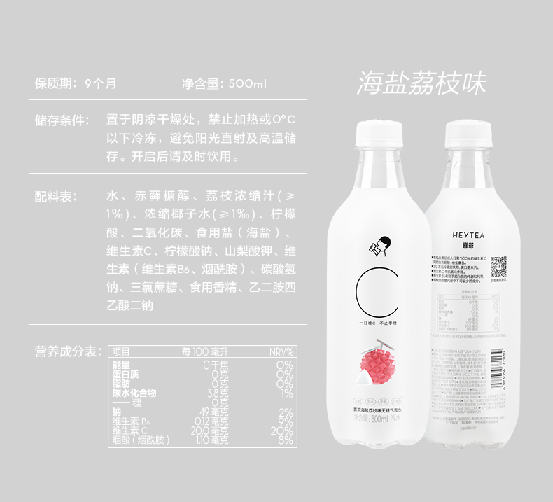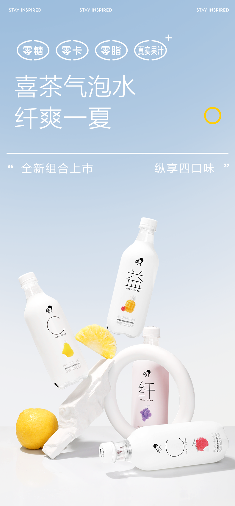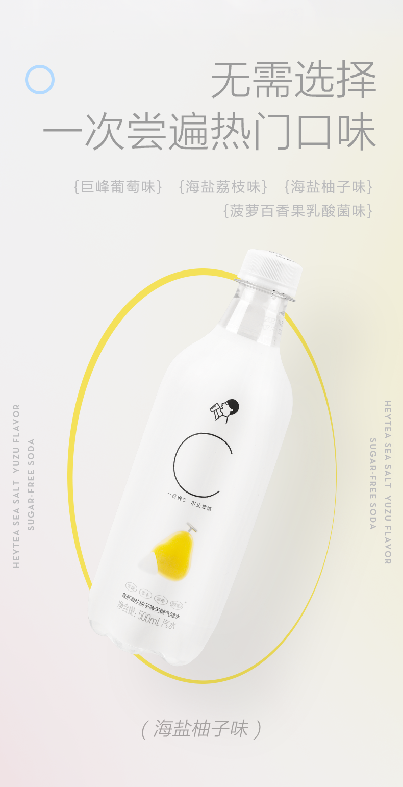 喜茶 无糖气泡水(汽水) 0脂0卡0热量苏打气泡水饮料500ml*12瓶组合口味整箱装