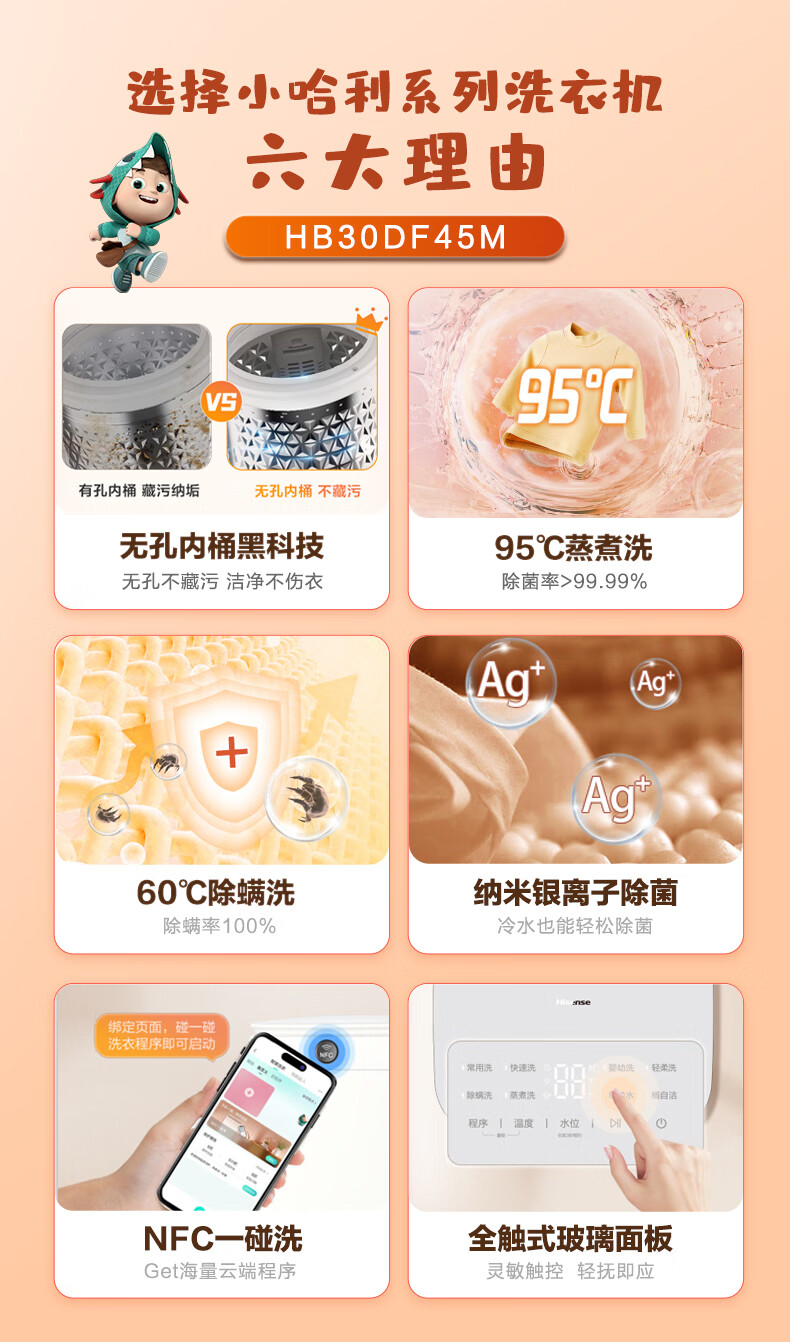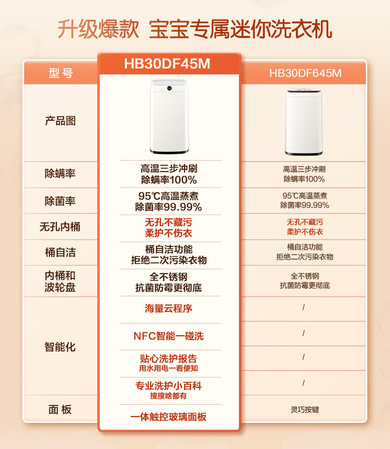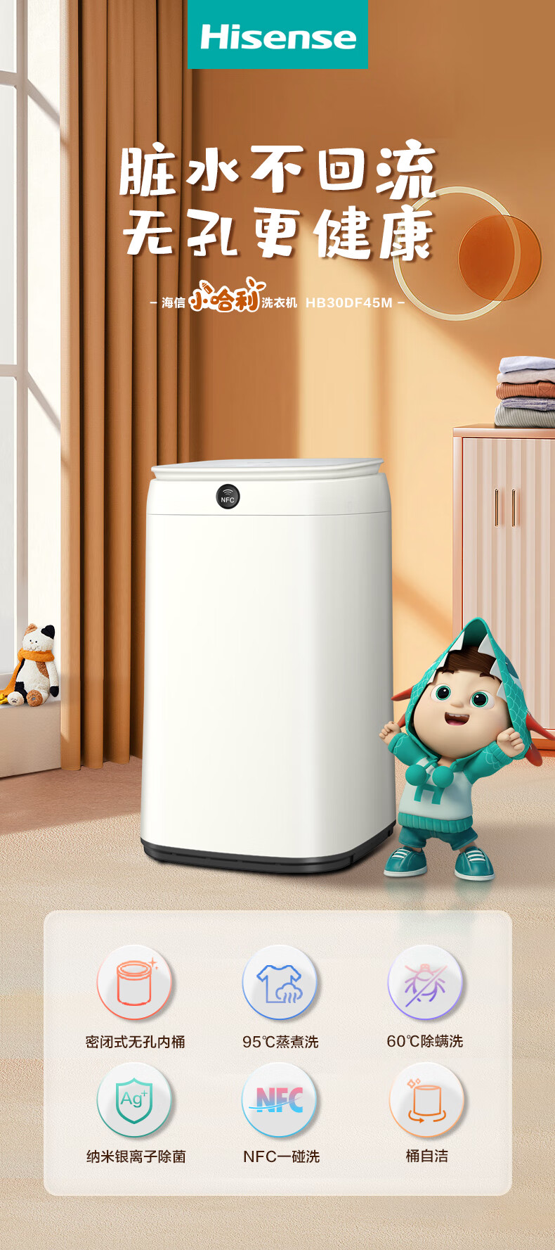海信(Hisense)小哈利 波轮洗衣机全自动 3公斤迷你洗衣机小型 婴儿洗衣机 无孔内桶HB30DF45M以旧换新