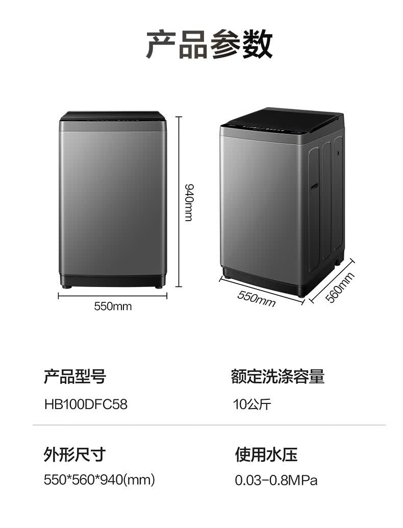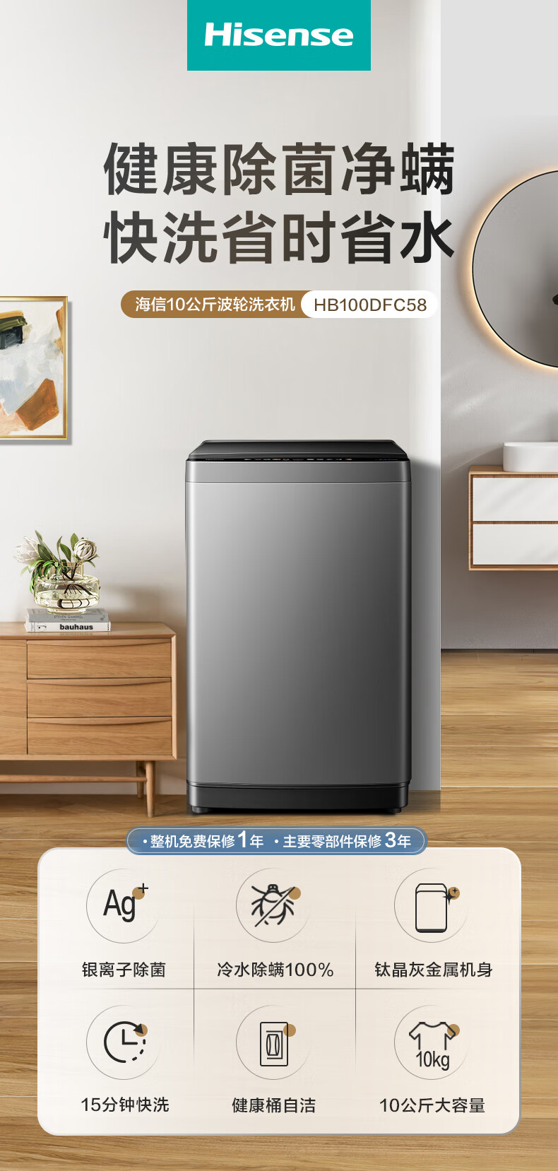 海信(Hisense)波轮洗衣机全自动 10公斤升级大容量波轮 银离子除菌 家用宿舍 除螨炫彩标识HB100DFC58以旧换新