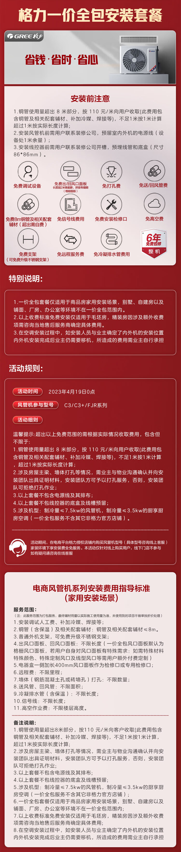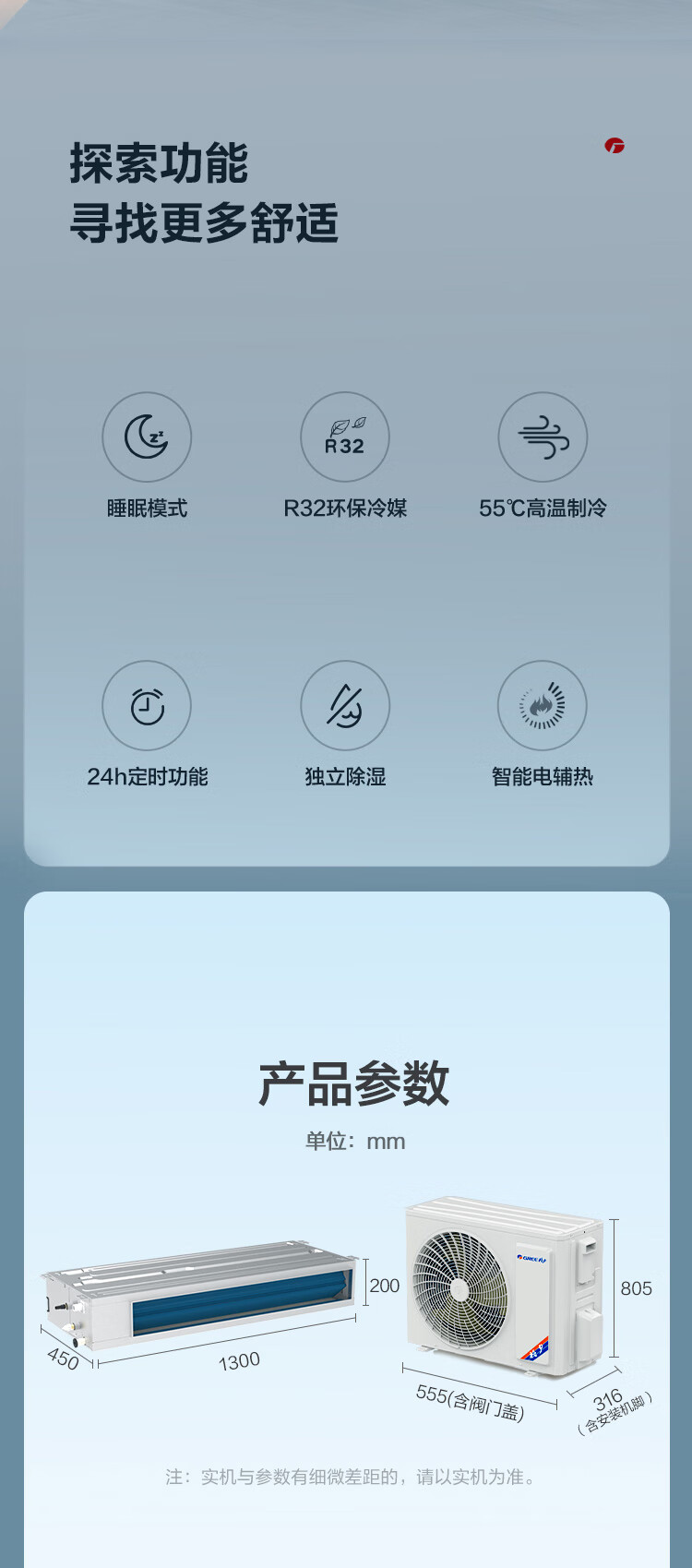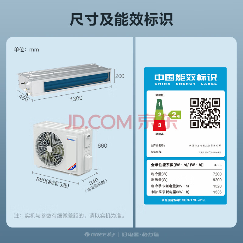 格力(GREE)中央空调 FJ风管机一拖一 3匹家用嵌入式空调 二级能效FJR7.2Pd/Cb3Nh-N2京仓派送(一价全包)