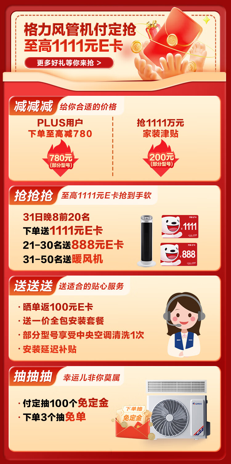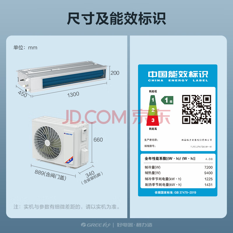 格力(GREE)中央空调 FJ风管机一拖一 3匹家用嵌入式空调 一级能效 FJR7.2Pd/Cb3Nh-N1京仓派送(一价全包)