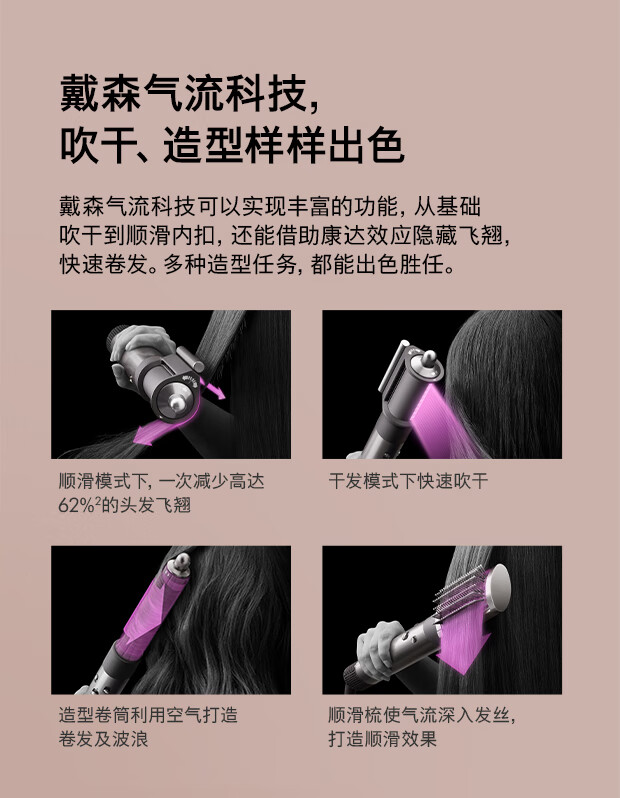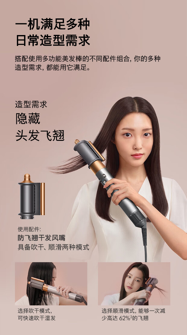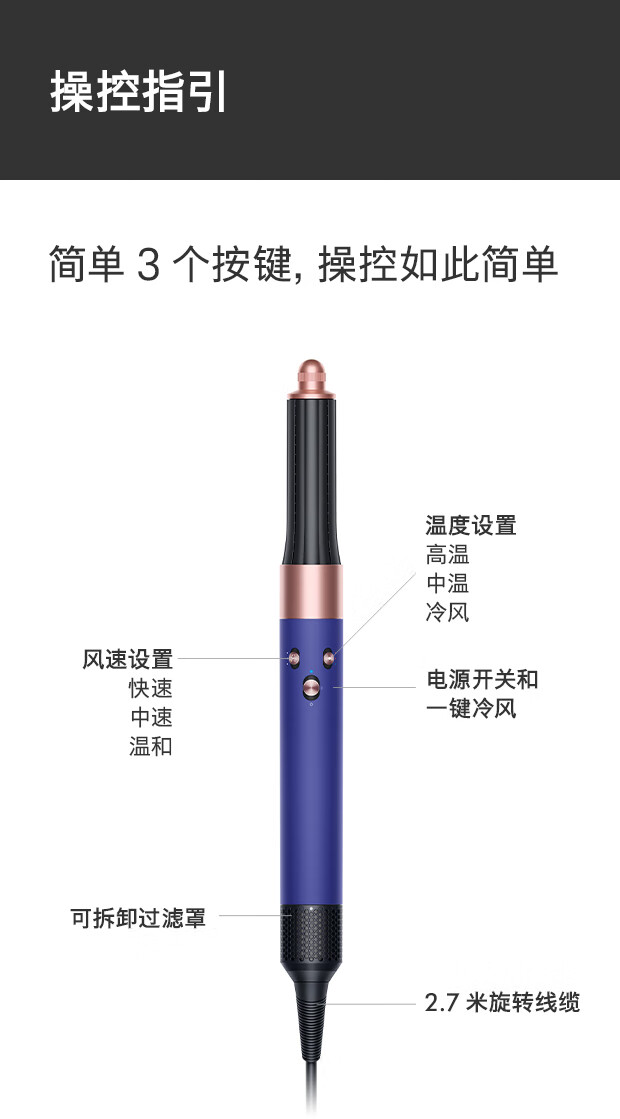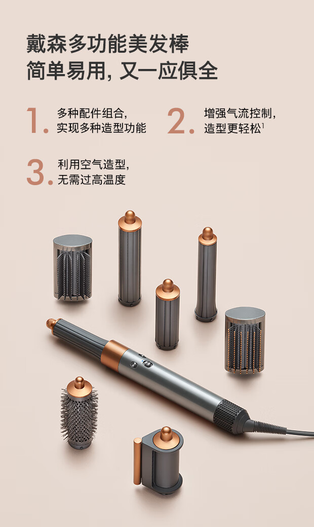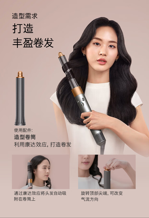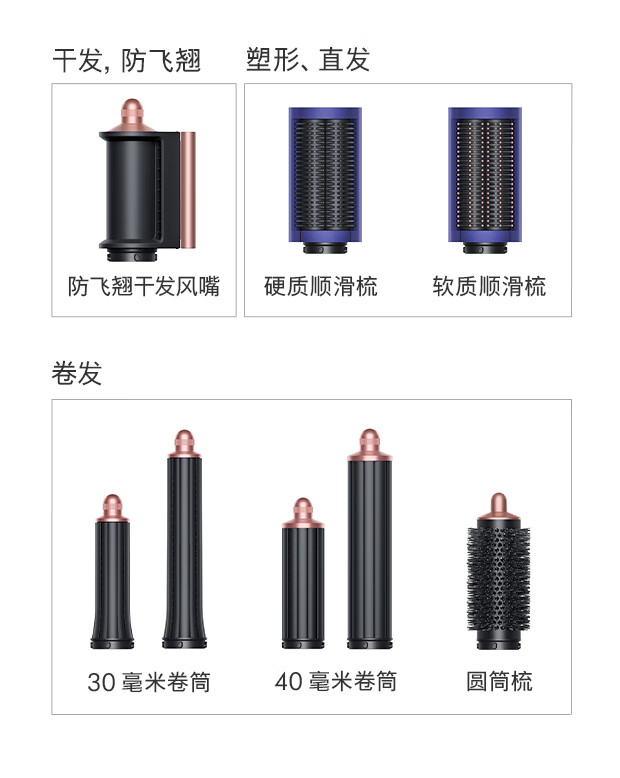 戴森(DYSON)多功能美发棒 Airwrap Complete空气卷发棒 多功能合一 旗舰套装 长春花蓝 长发版