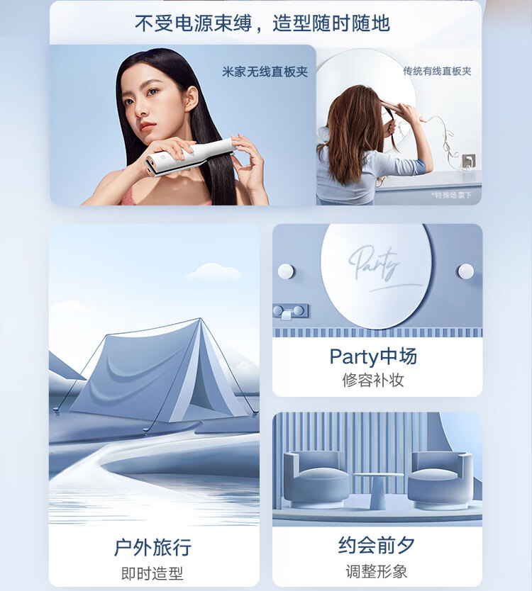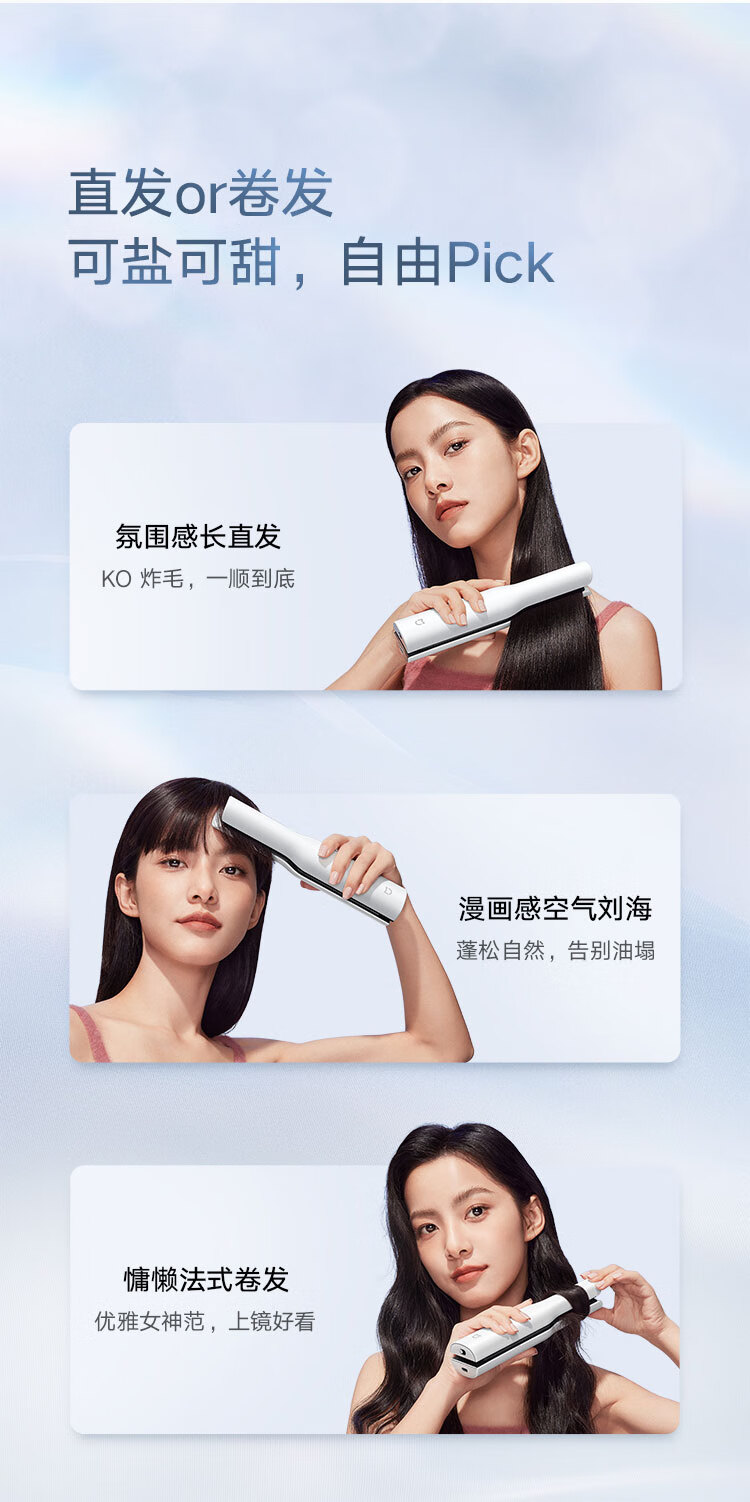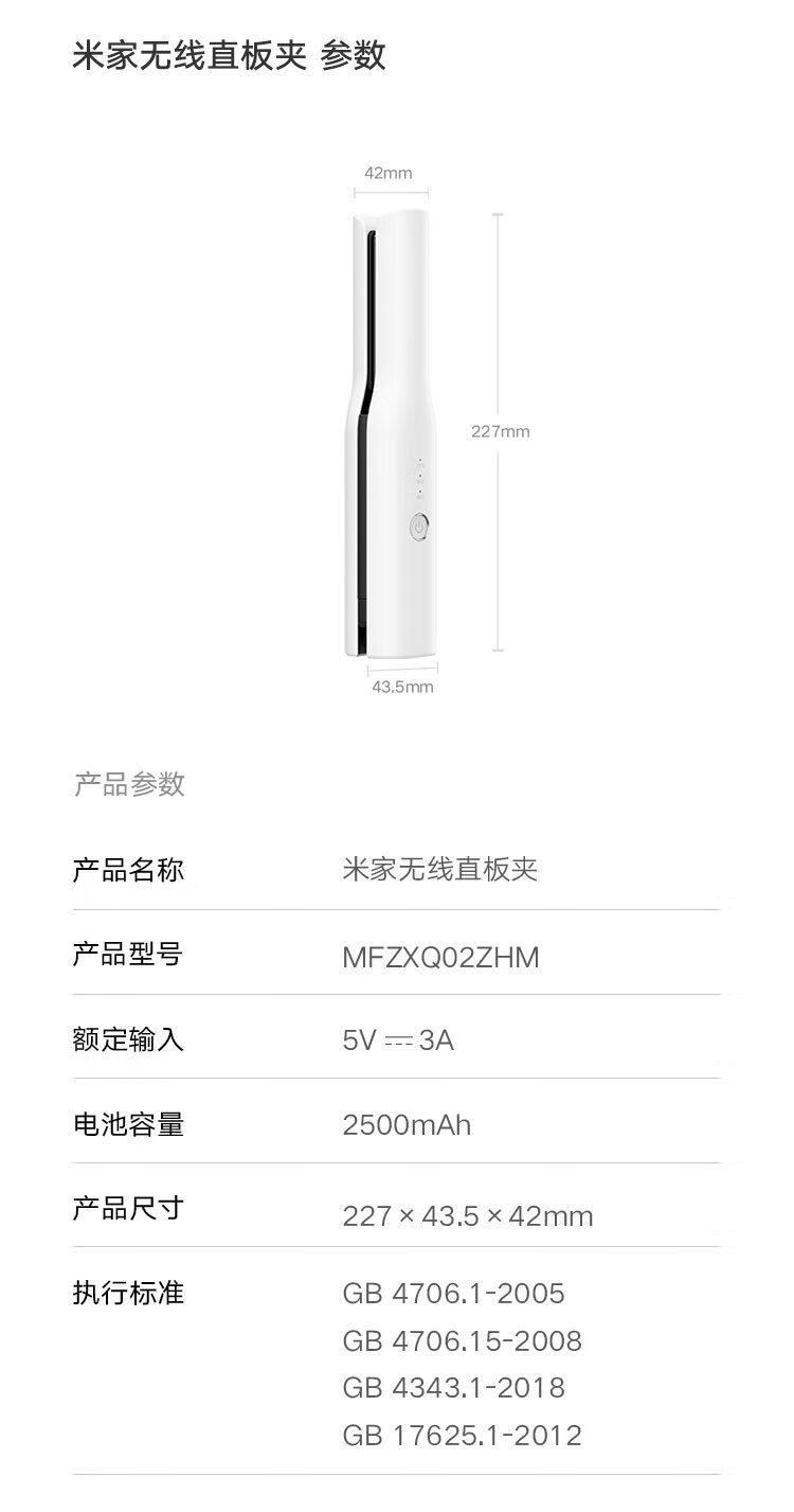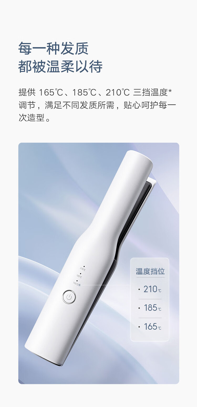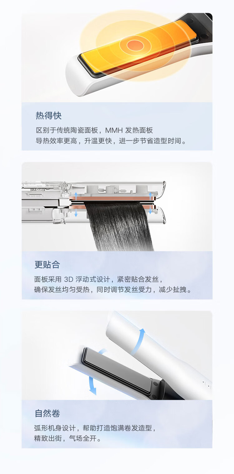 小米(MI)米家无线直板夹 直发器 卷发器 夹板负离子护发不伤发 轻巧无线 直卷两用 智能控温