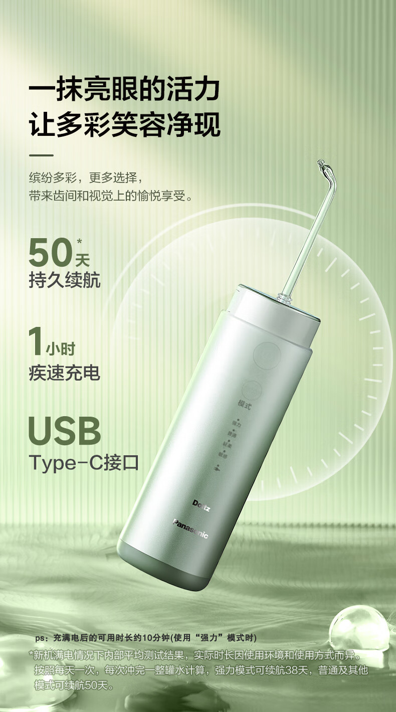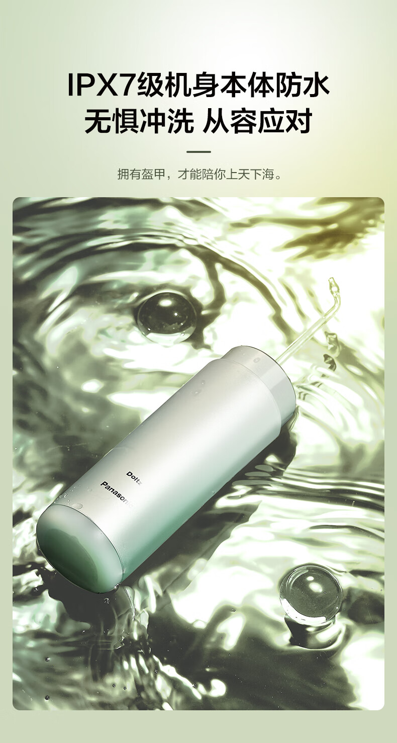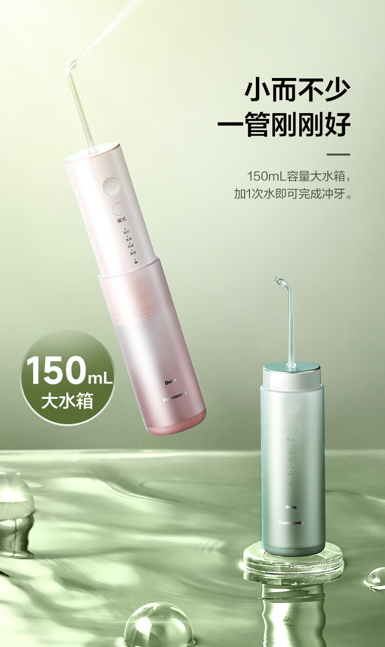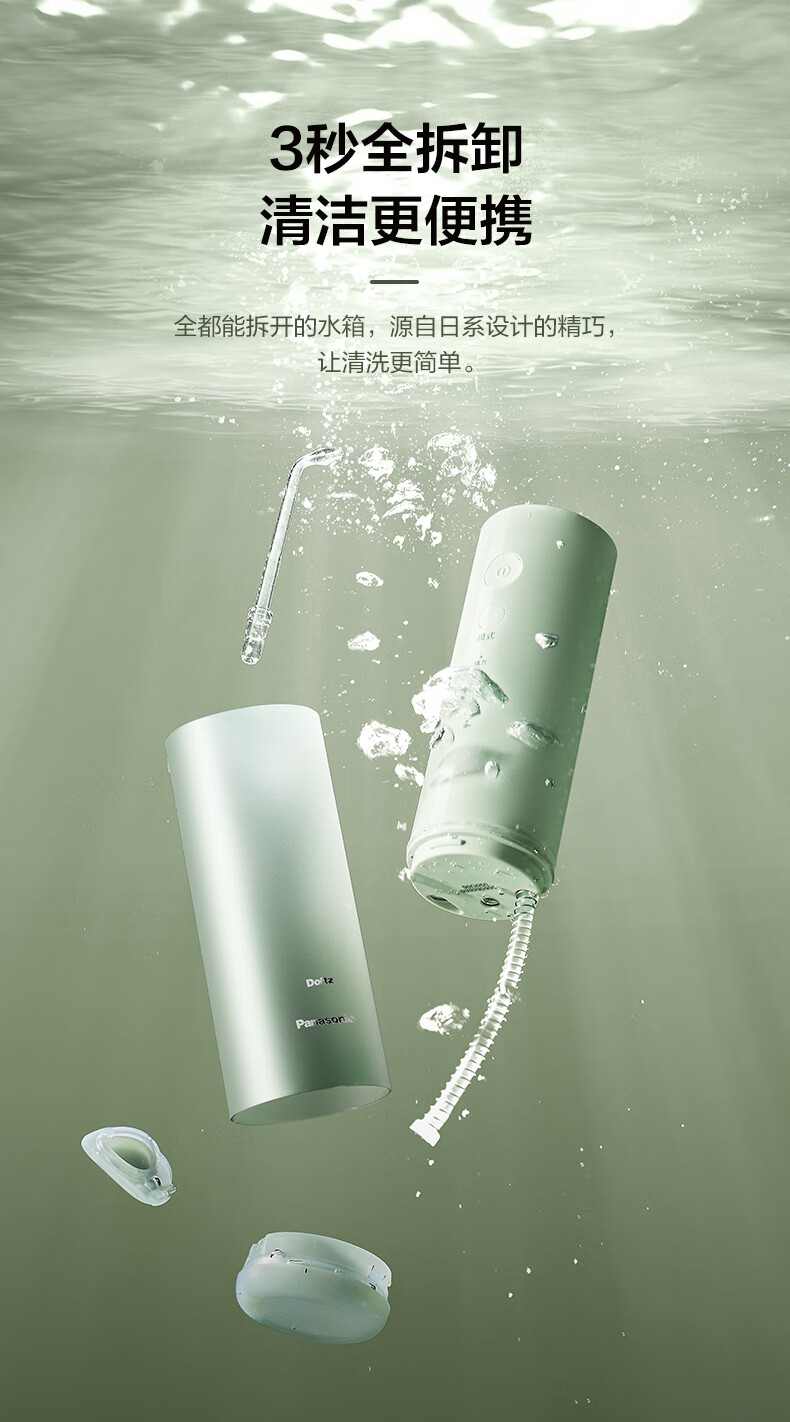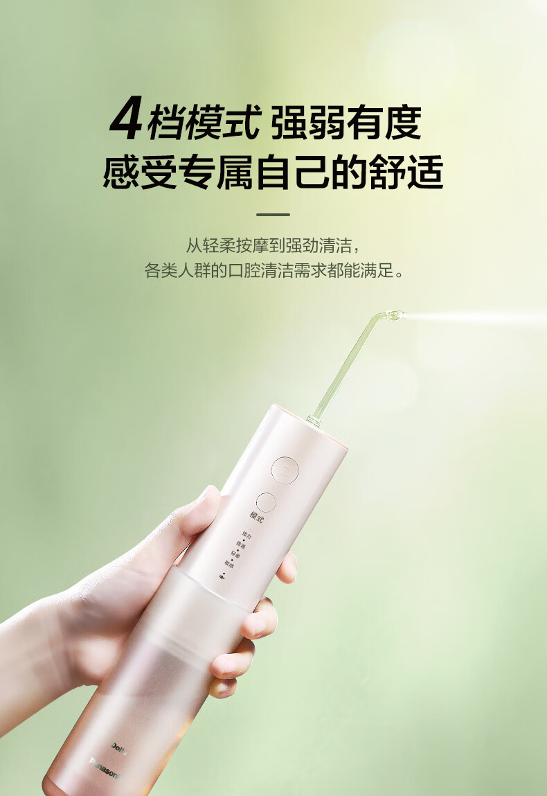 松下(Panasonic)冲牙器洗牙器超声波洁牙器 去牙菌 斑小巧便携式伸缩小圆管 持久续航4频模式EW-DJ43-P樱花粉