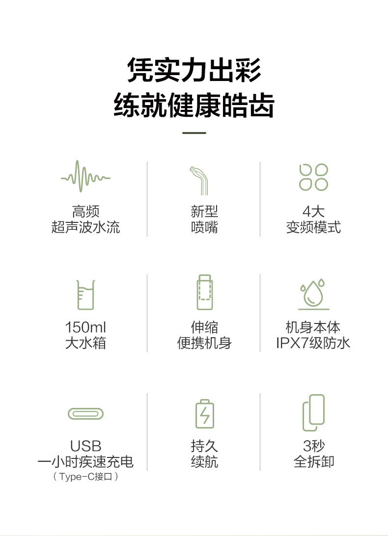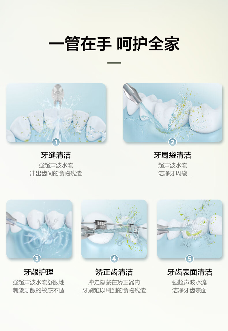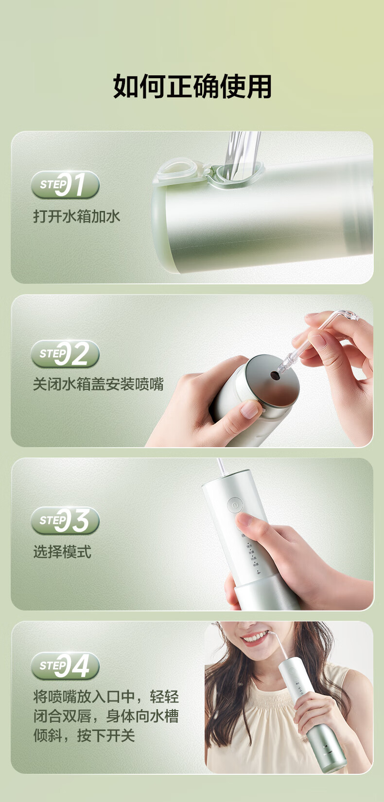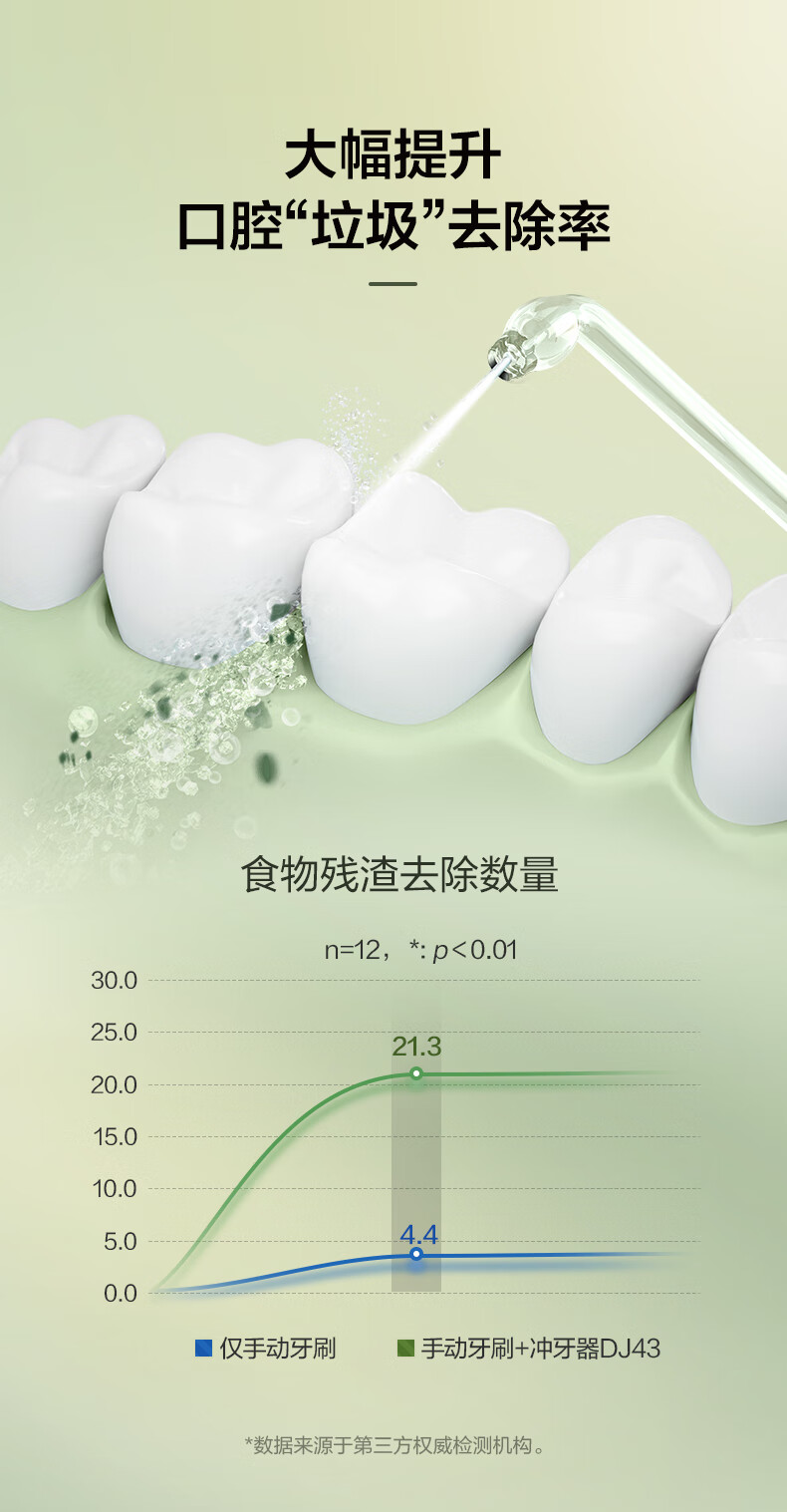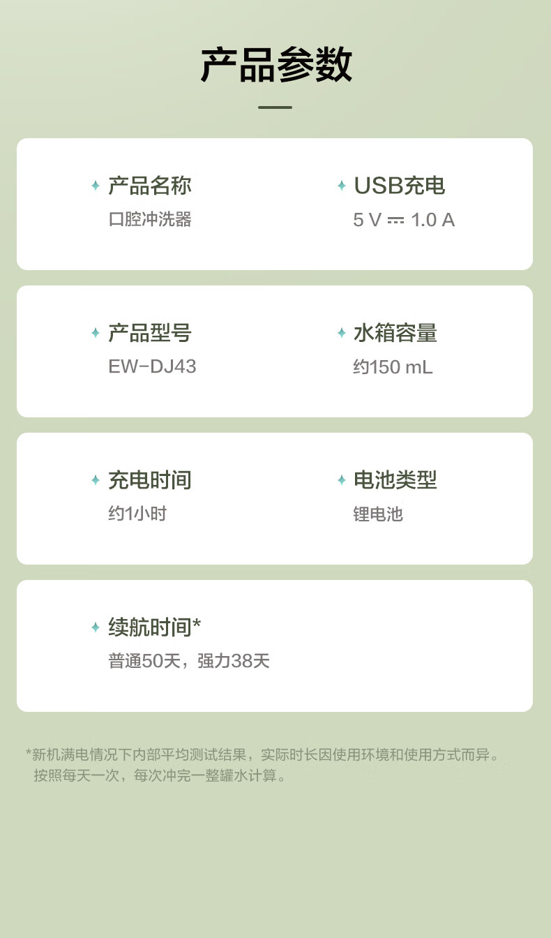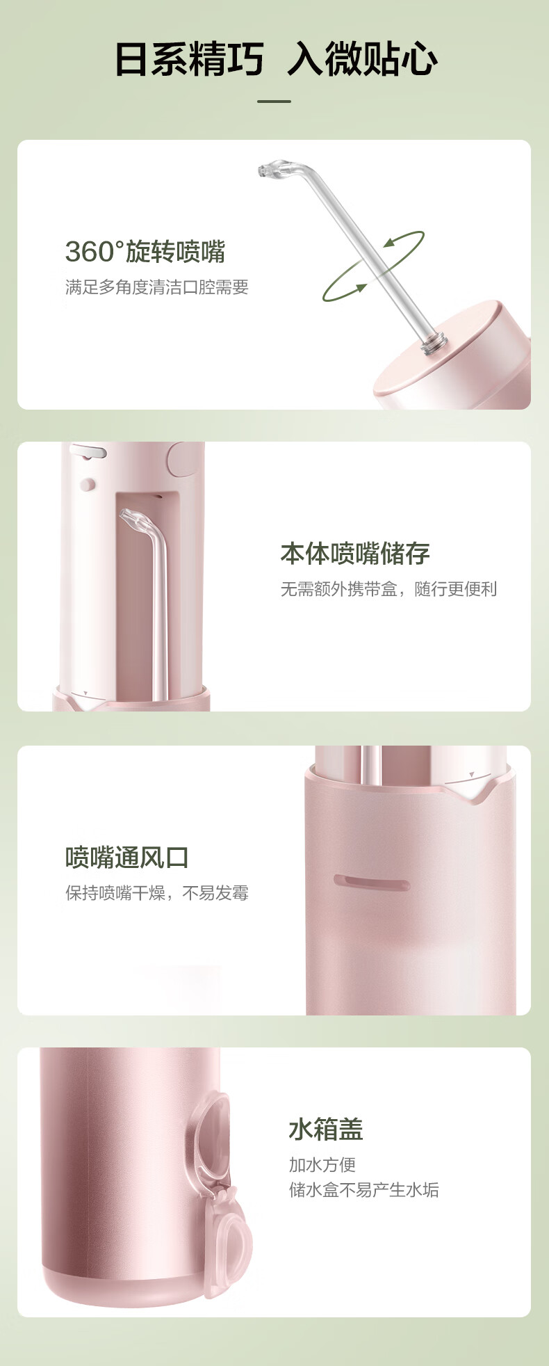 松下(Panasonic)冲牙器洗牙器超声波洁牙器 去牙菌 斑小巧便携式伸缩小圆管 持久续航4频模式EW-DJ43-P樱花粉