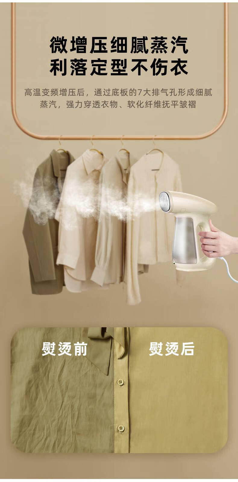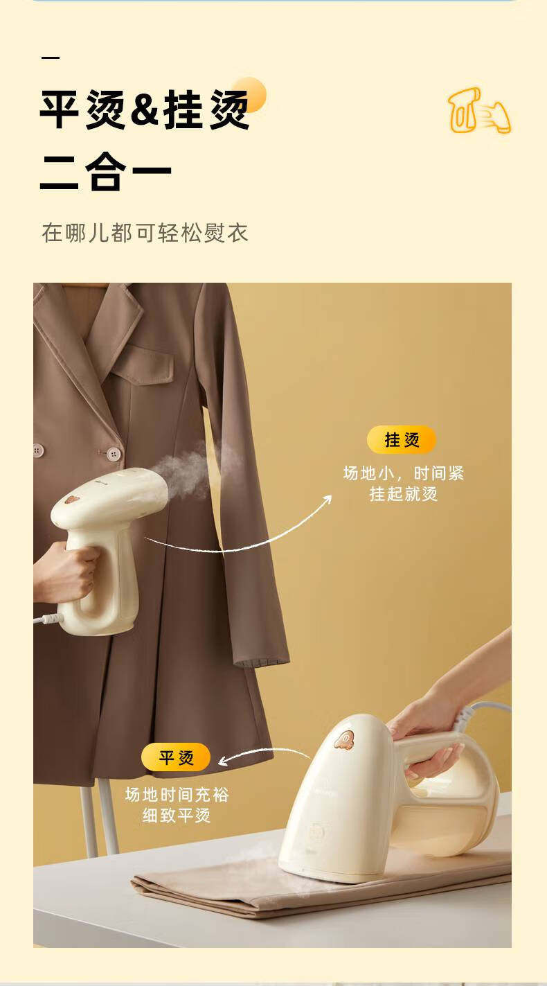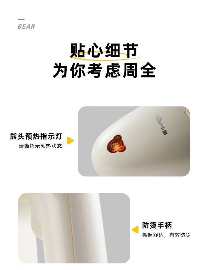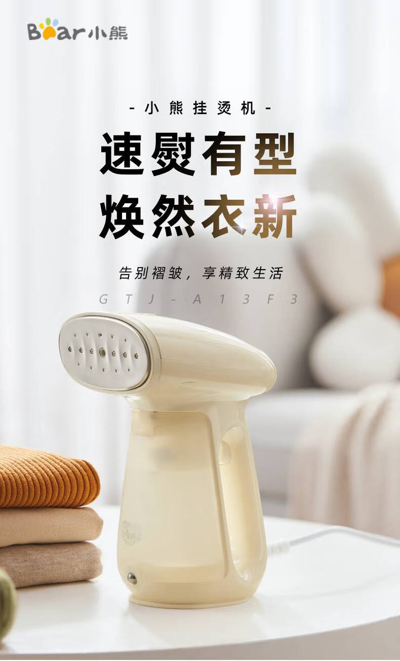 小熊(Bear)手持挂烫机家用小型便携式蒸汽电熨斗宿舍熨烫衣服神器熨烫机米黄色【GTJ-A13F2】