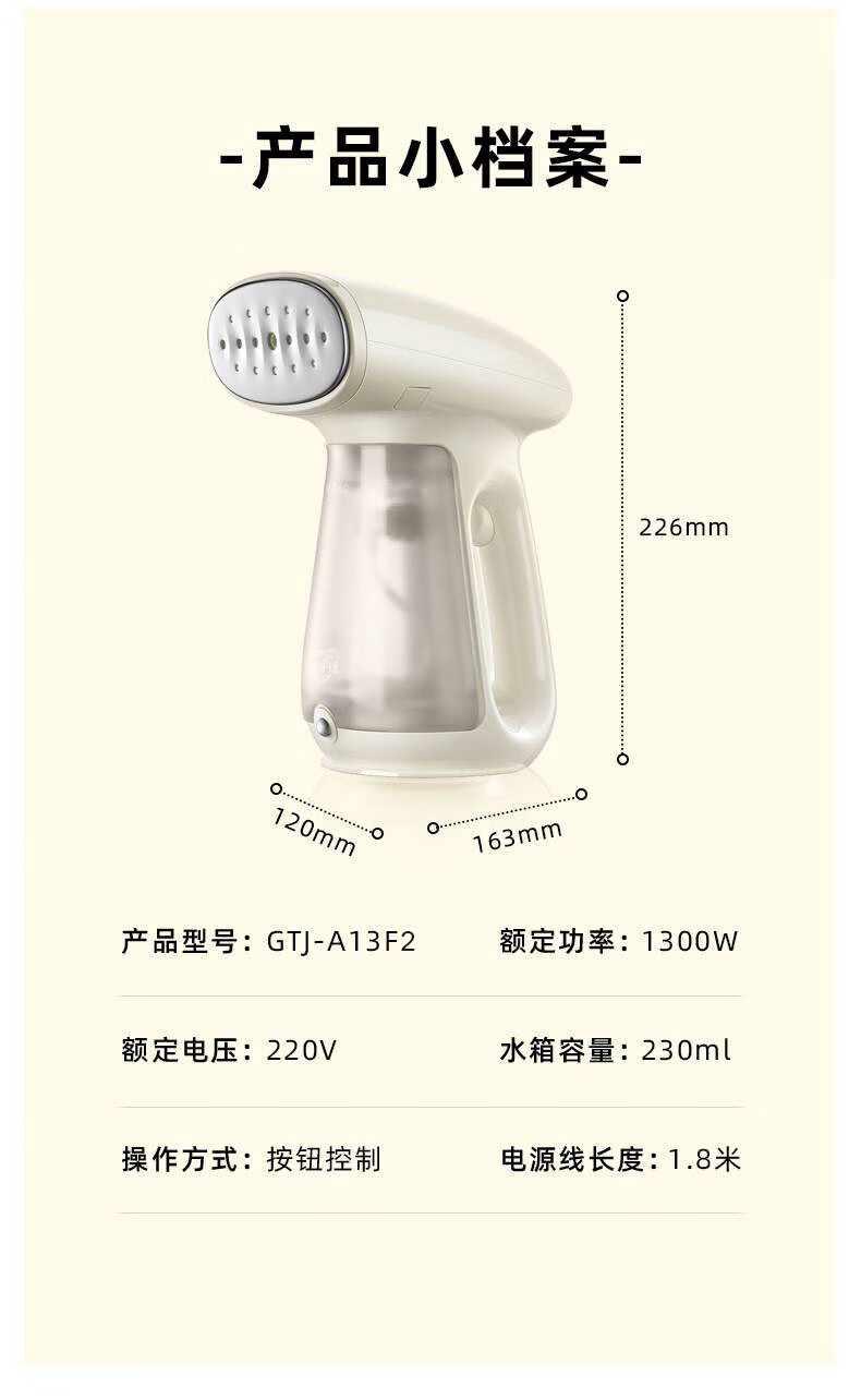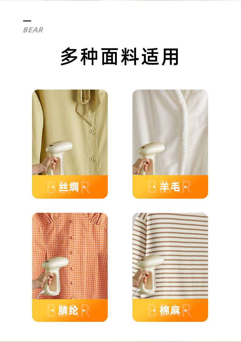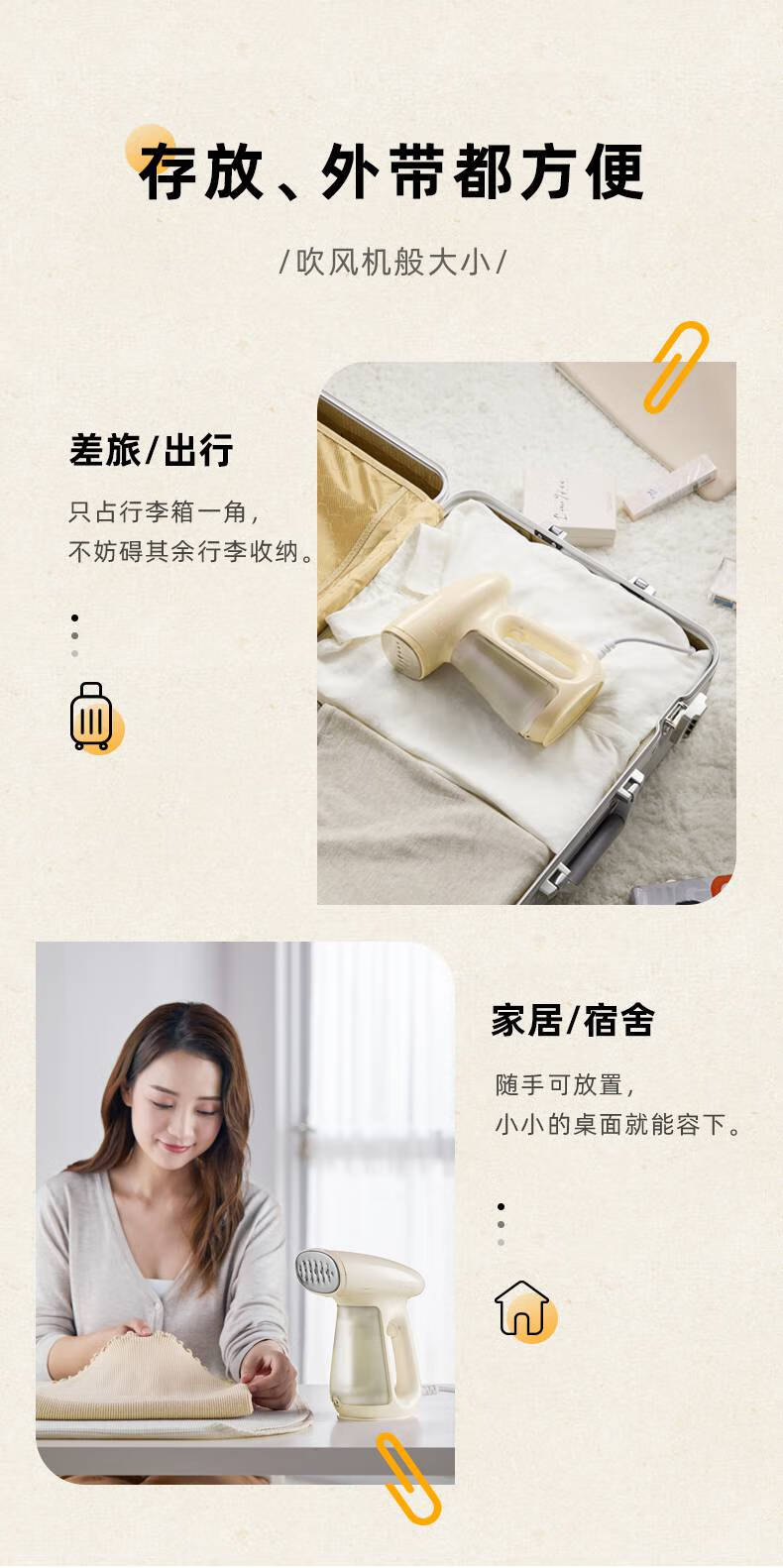 小熊(Bear)手持挂烫机家用小型便携式蒸汽电熨斗宿舍熨烫衣服神器熨烫机米黄色【GTJ-A13F2】