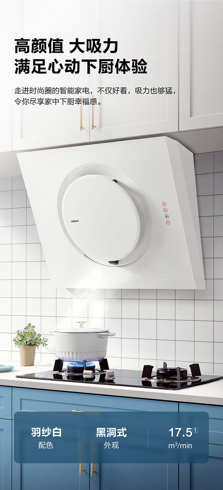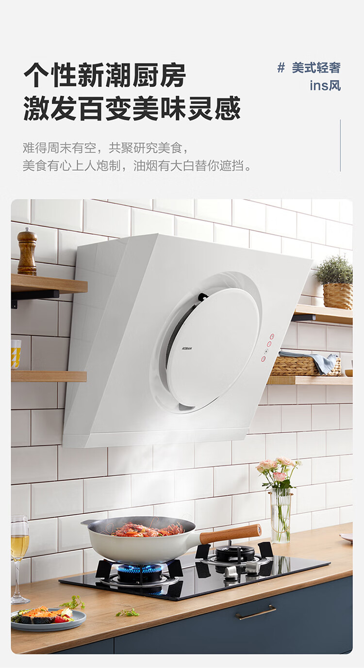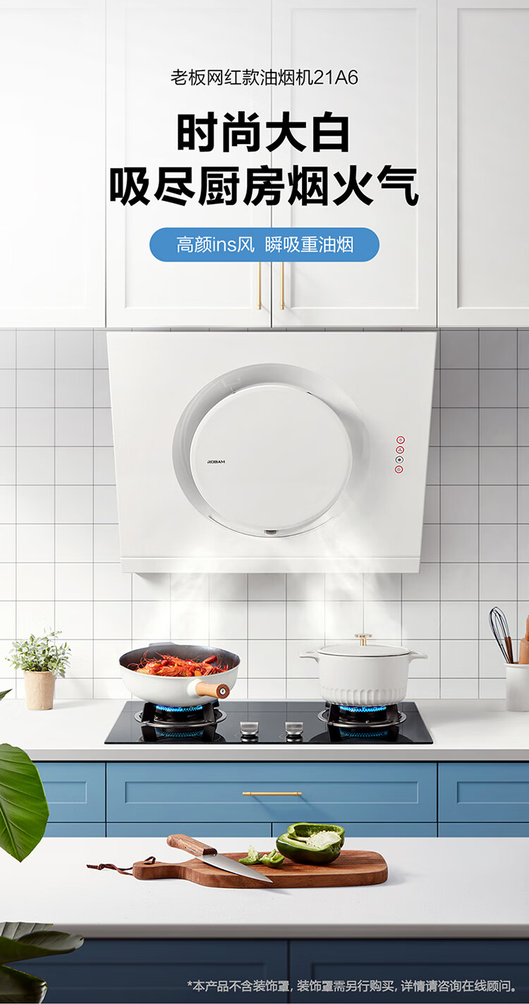 老板(Robam)抽油烟机侧吸油烟机家用抽吸油烟机17.5大风量网红白色小清新小尺寸21A6+30B1天然气( 21A6+30B0)