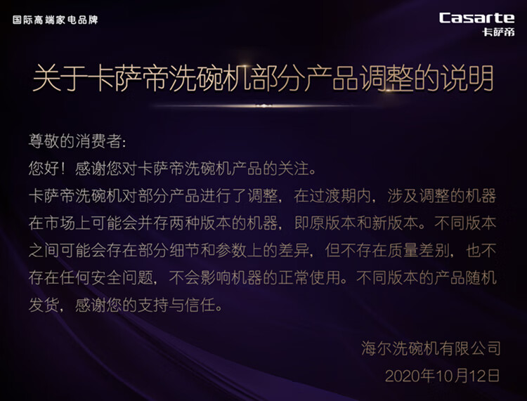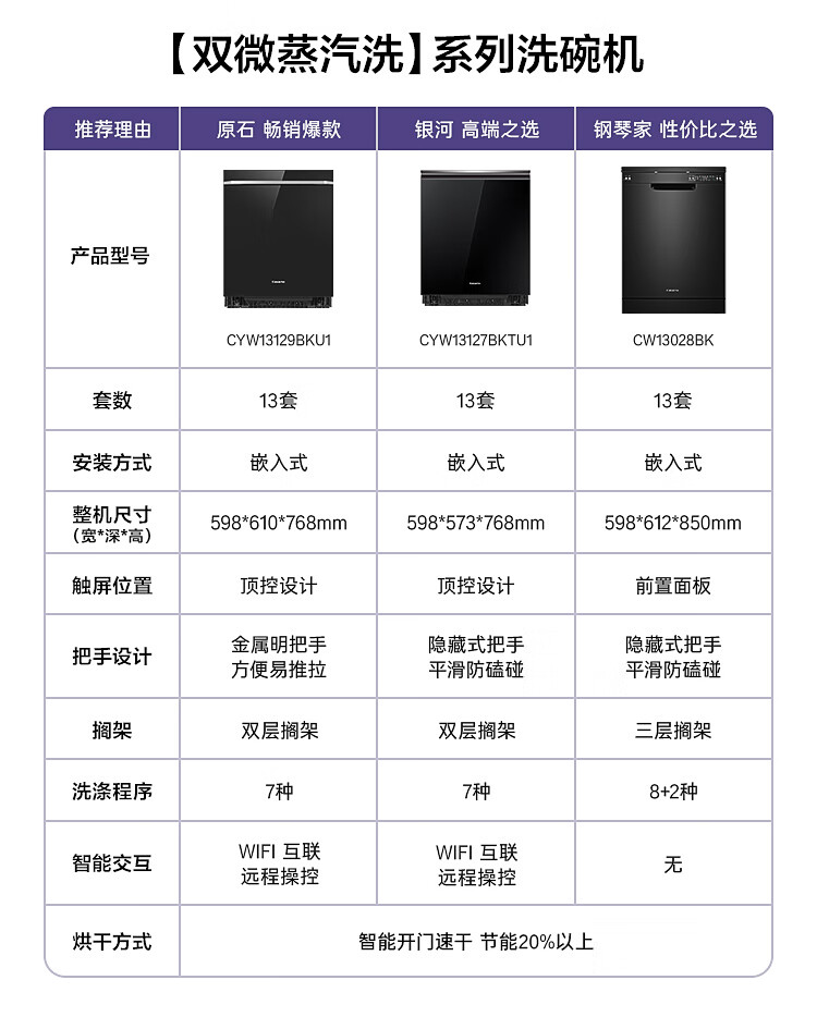 卡萨帝(Casarte)洗碗机独立式嵌入式13套大容量钢琴家系列 洗消一体 智能开门速干CW13028BK