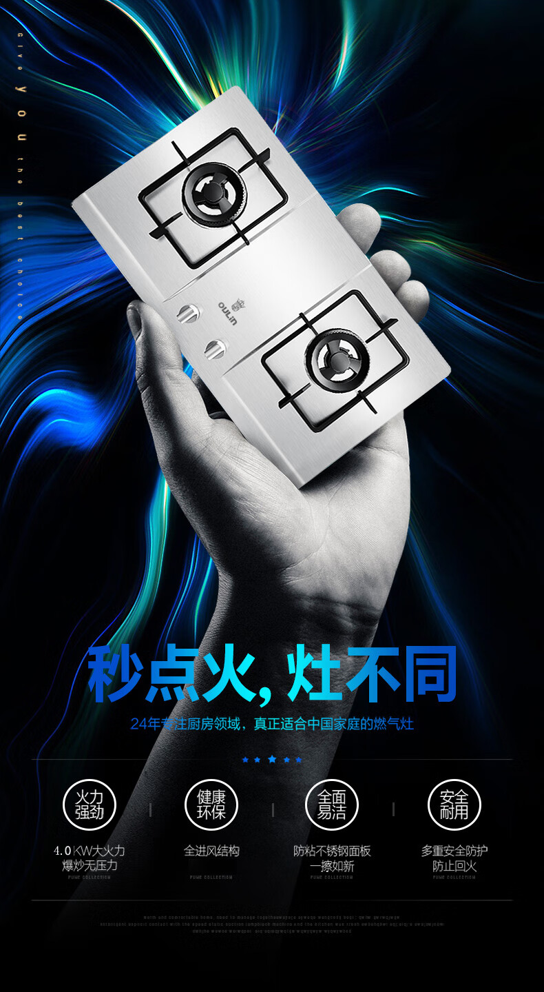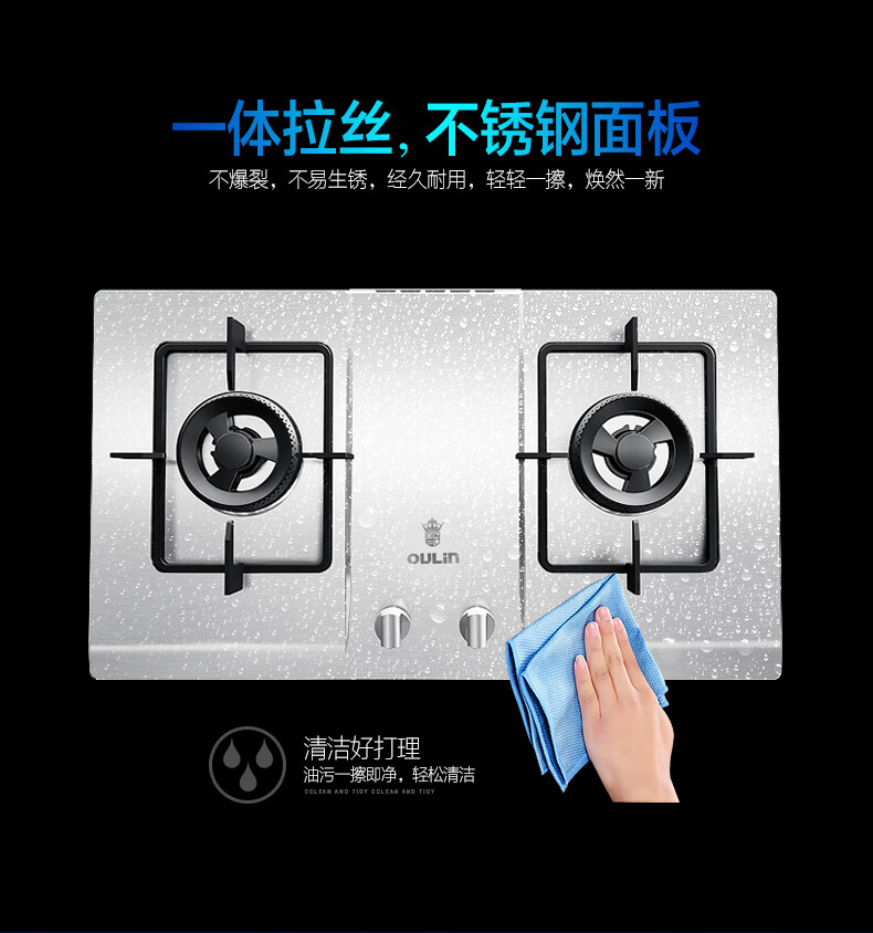 欧琳(OULIN)4.0KW大火力不锈钢燃气灶液化气家用节能速火灶具JZY-E3502G