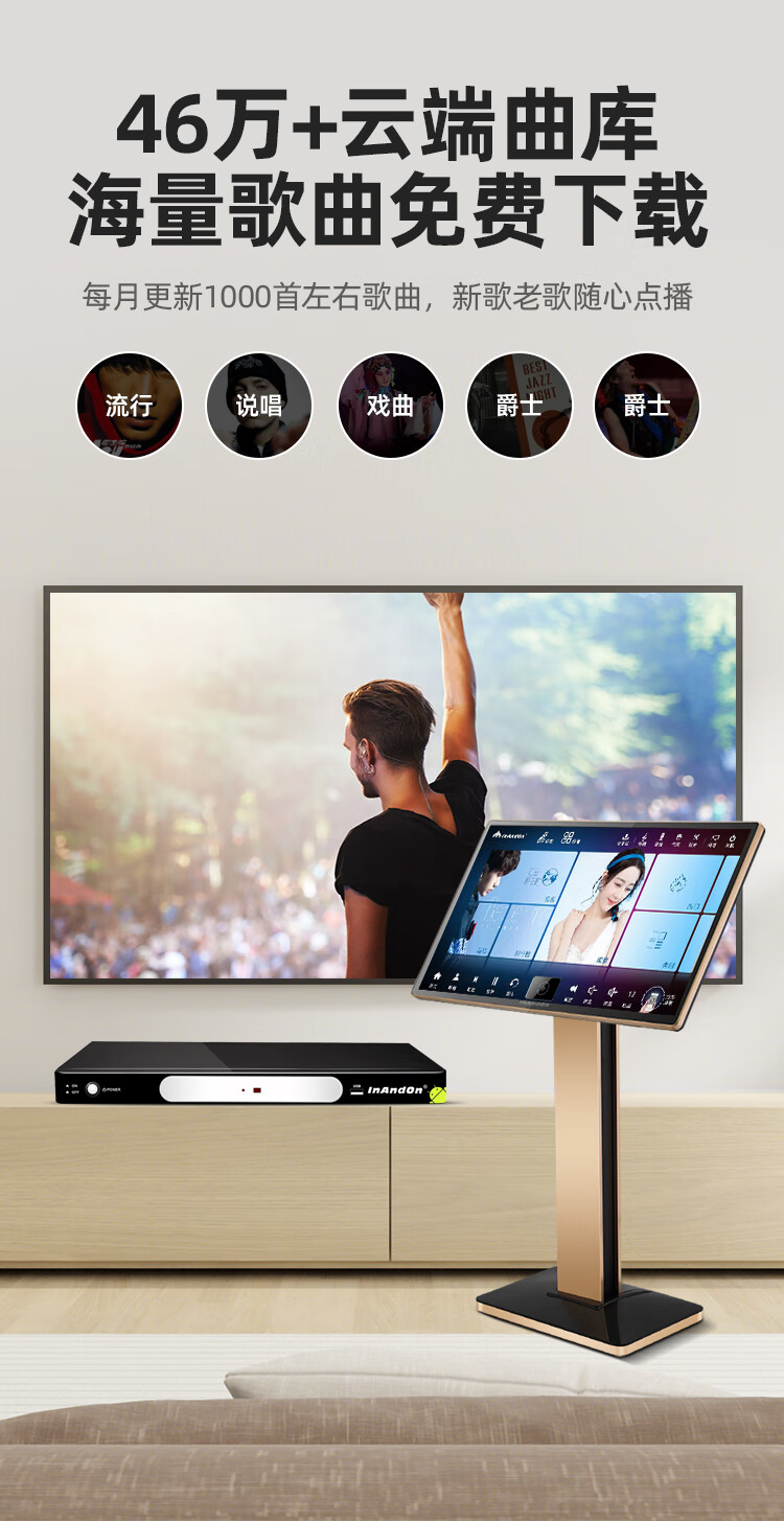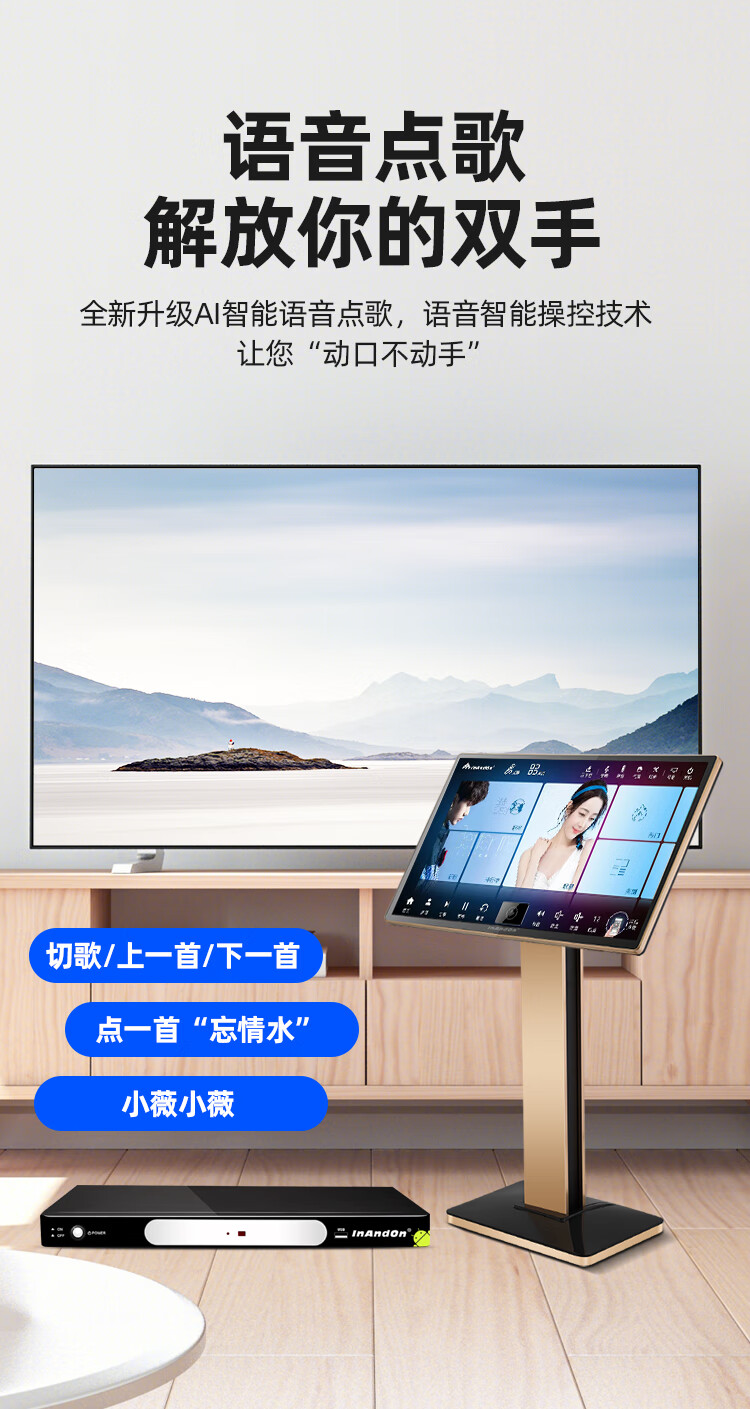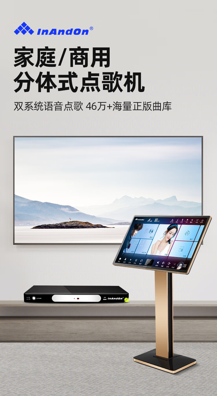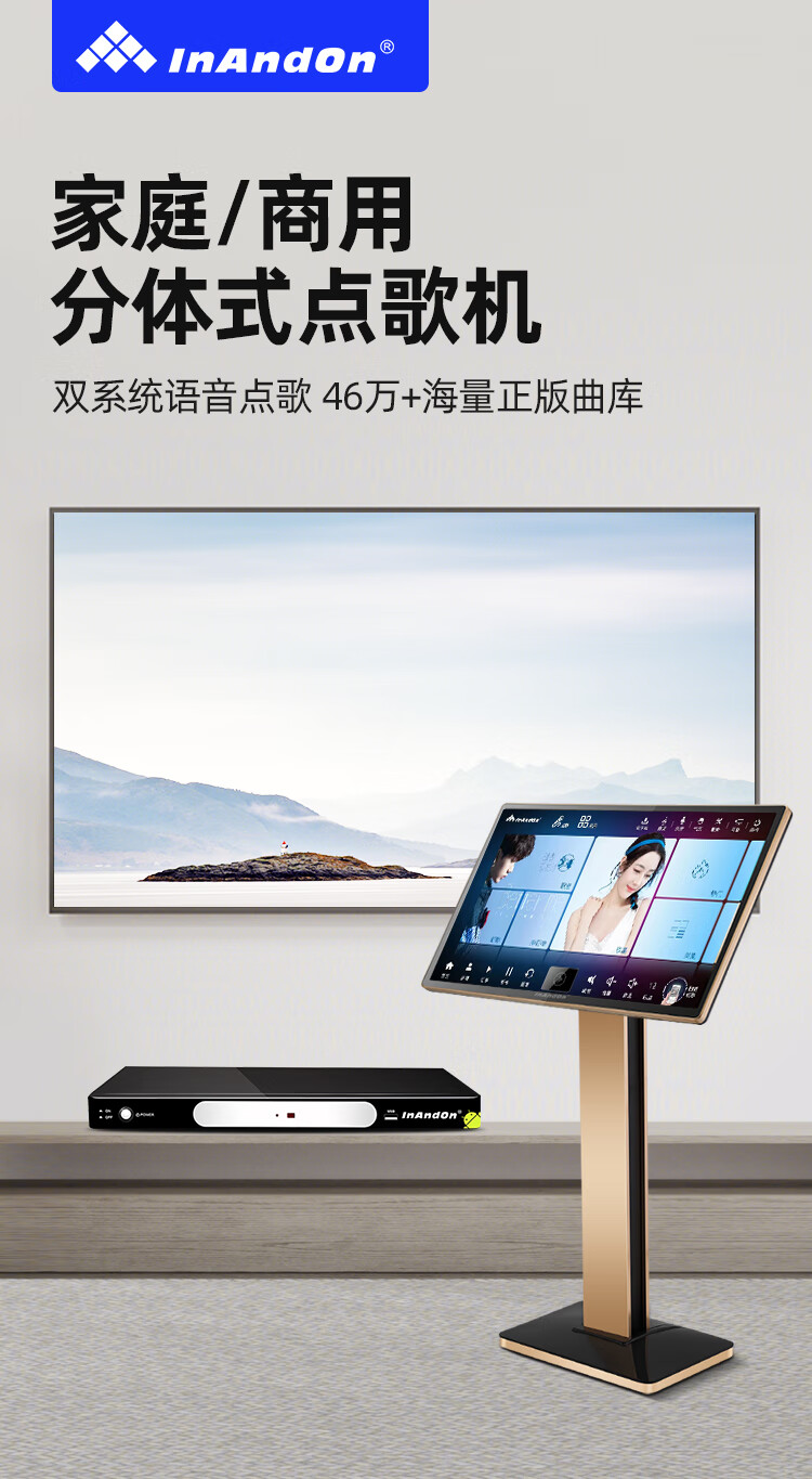 InAndOn音王点歌机主机分体机家用卡拉ok家庭ktv点唱机触摸屏智能网络户外 19英寸触摸屏+主机
