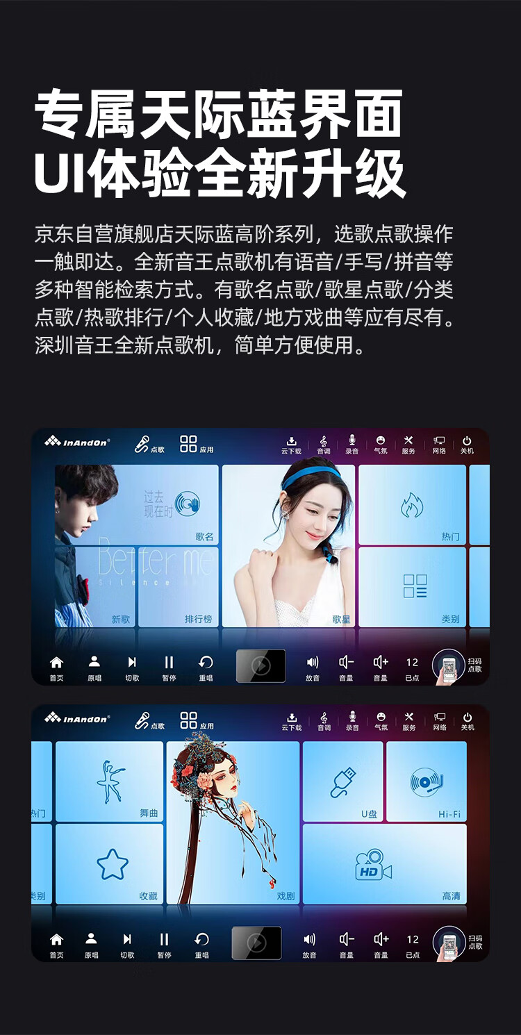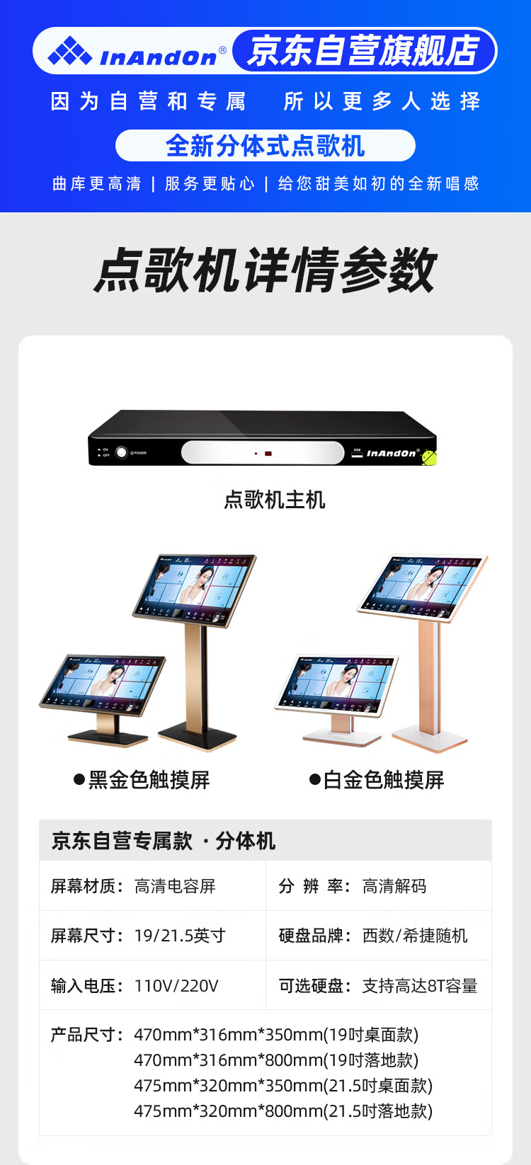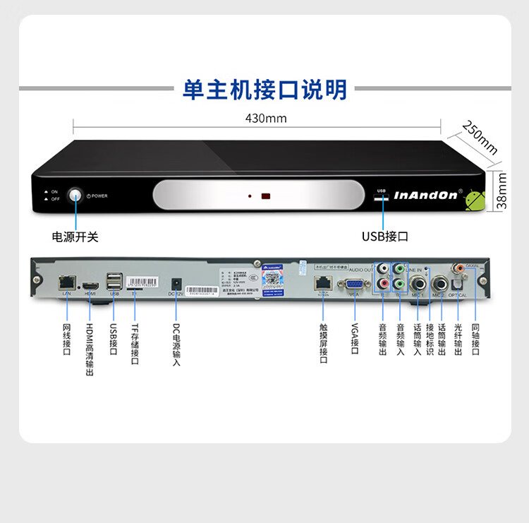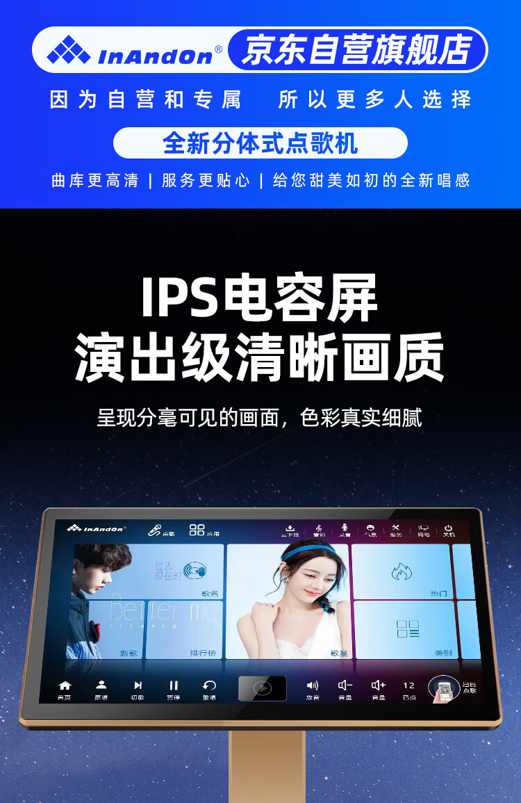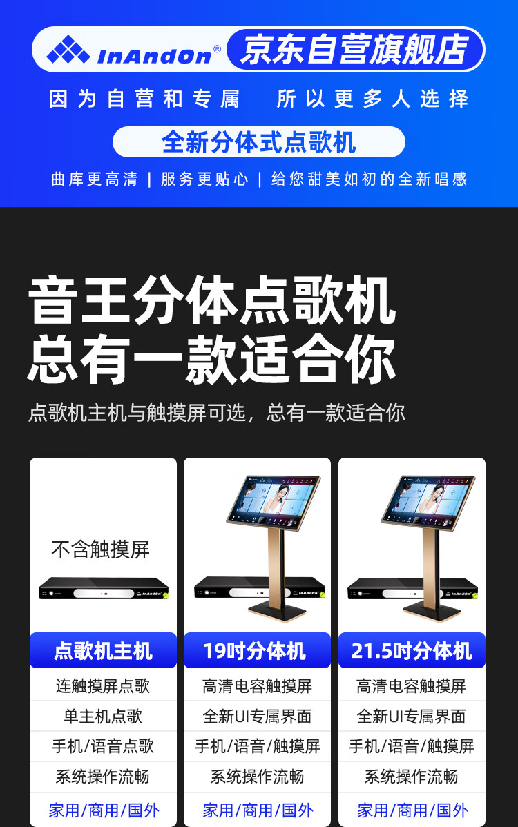 InAndOn音王点歌机主机分体机家用卡拉ok家庭ktv点唱机触摸屏智能网络户外 19英寸触摸屏+主机