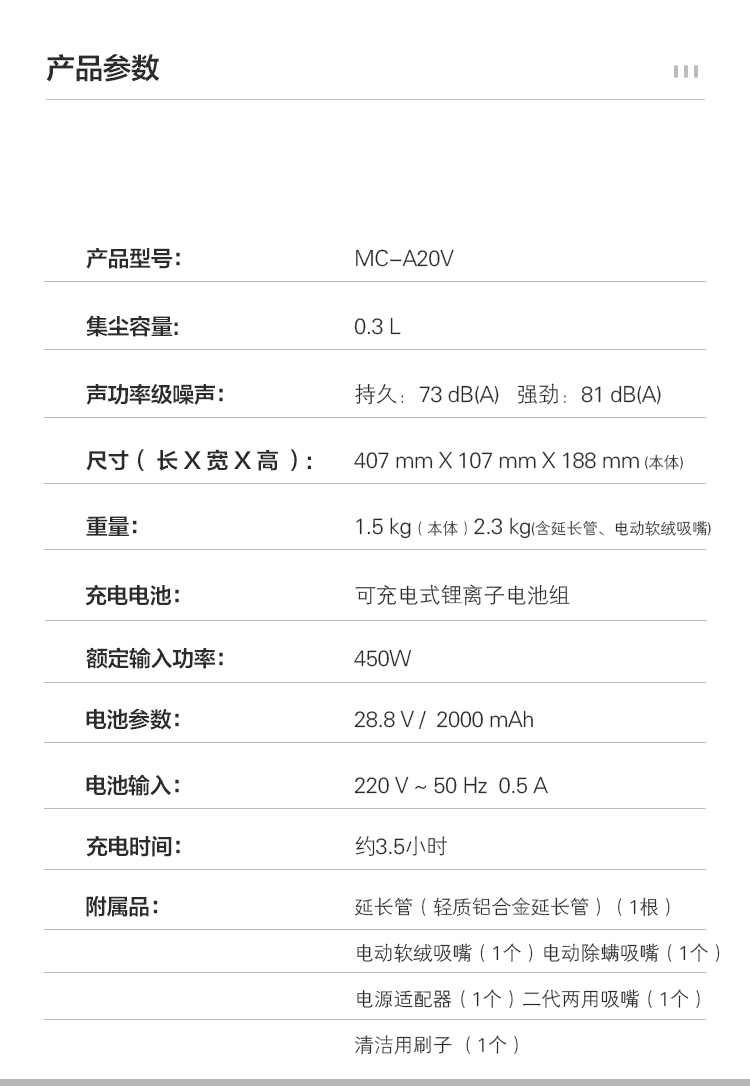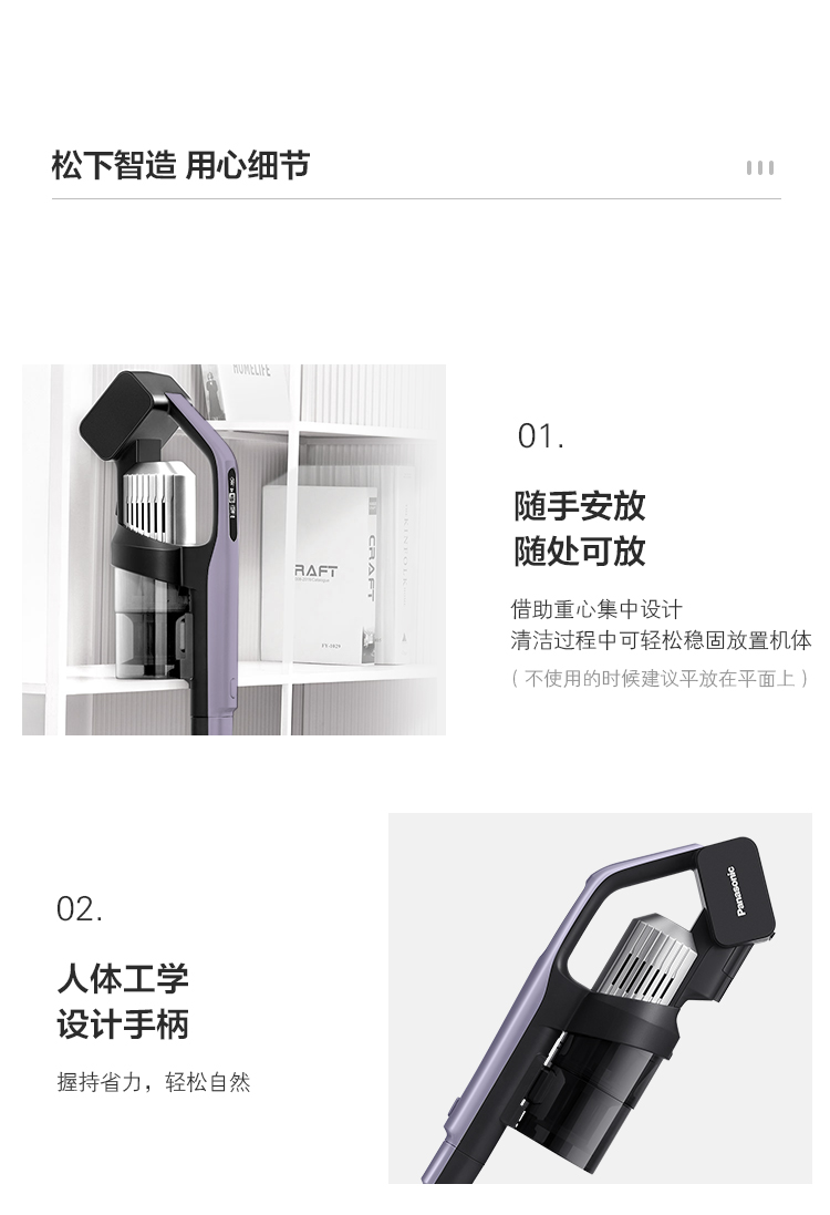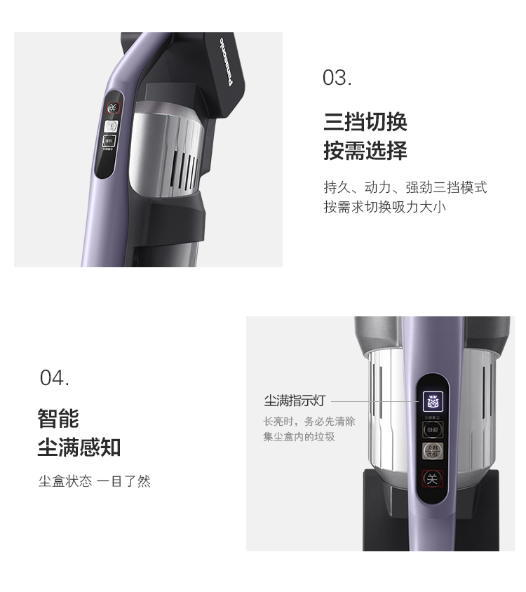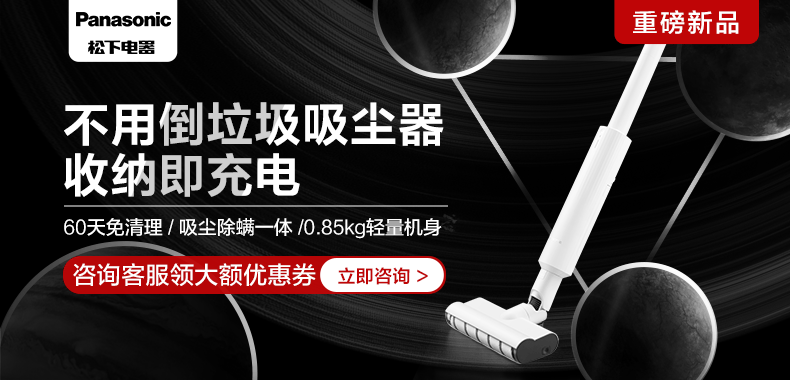 松下 Panasonic A系列 无线手持吸尘器 家用大吸力吸尘器 除尘除螨450W大功率 宠物家庭适用MC-A20V