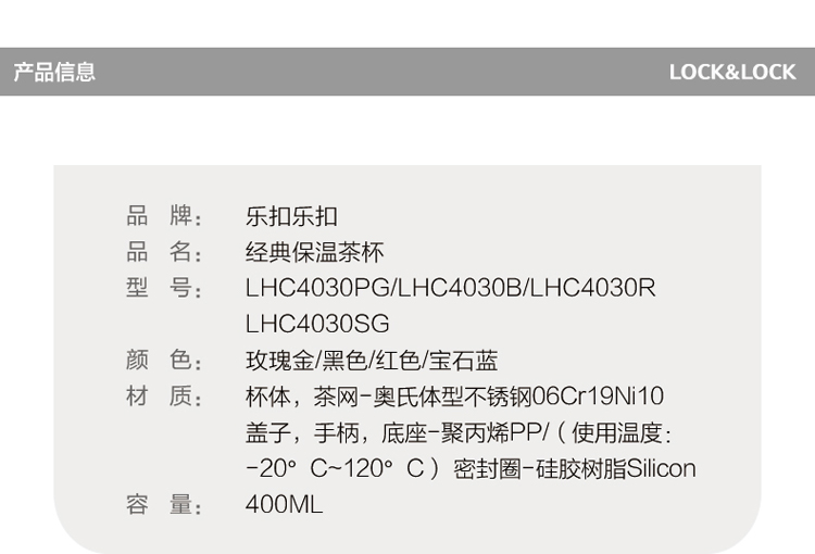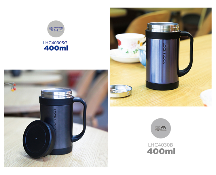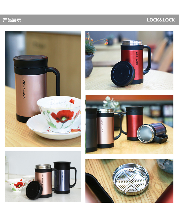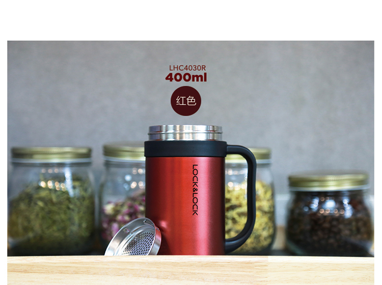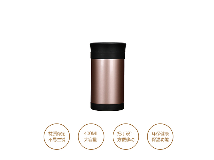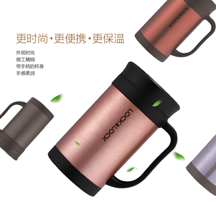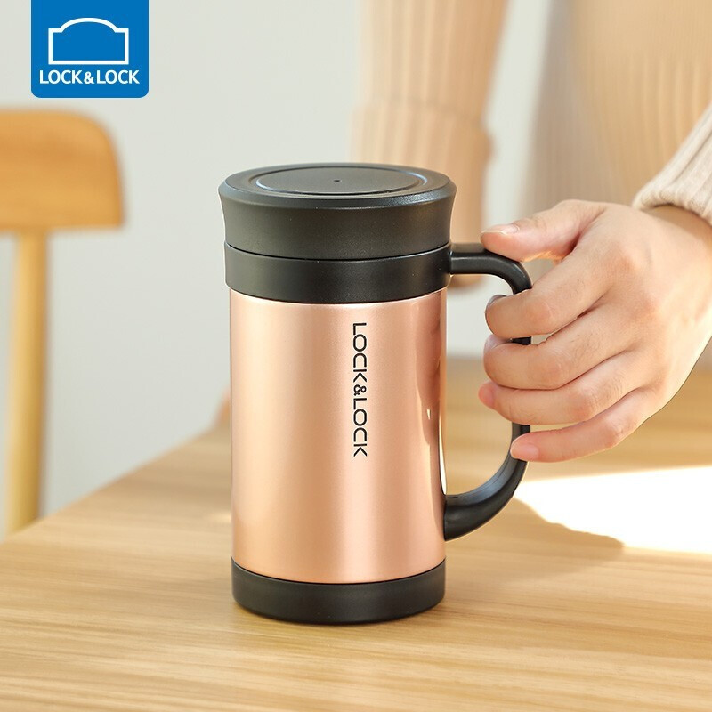 乐扣乐扣(LOCK&LOCK)真空商务保温杯不锈钢带手柄水杯子400mL玫瑰金LHC4030PG