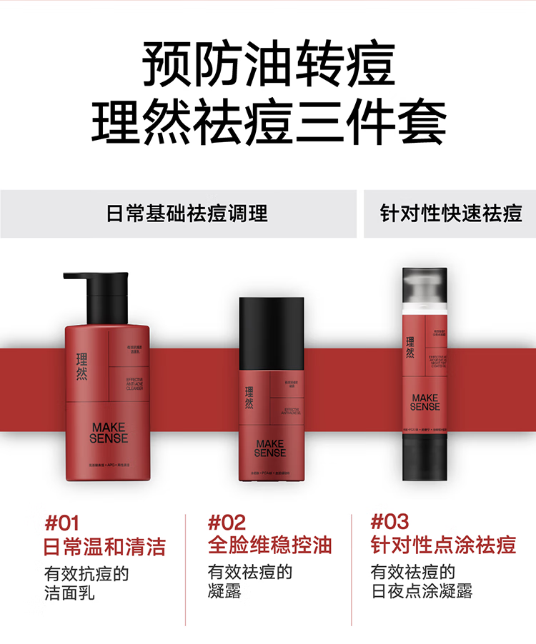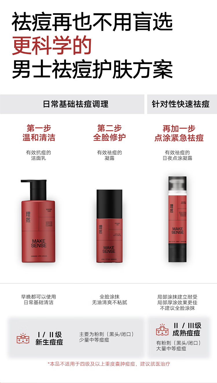 理然男士有效祛痘保湿水润套装 控油抗痘补水舒缓洗面奶凝露送男友