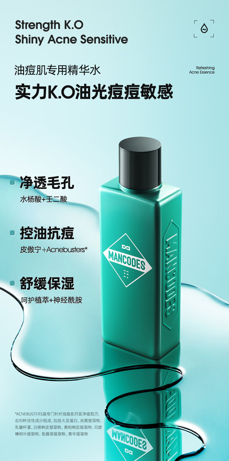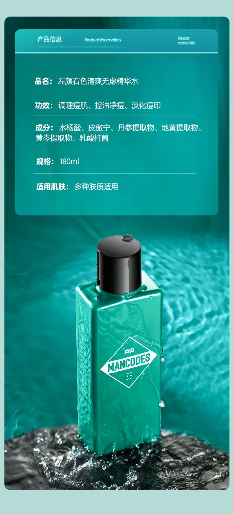 左颜右色清爽无虑精华水180ml男士控油净痘水杨酸爽肤水补水保湿收缩毛孔