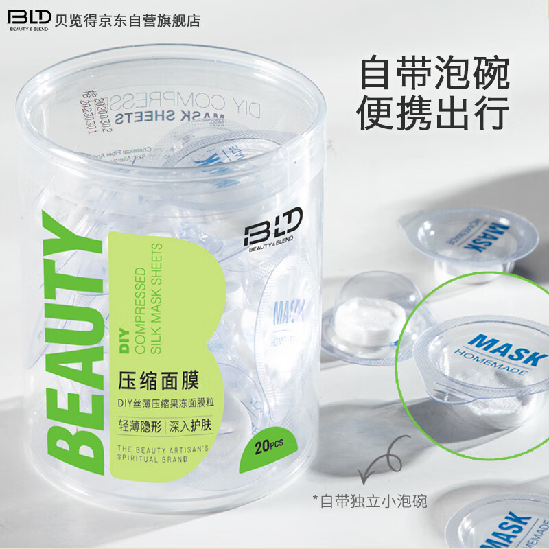 贝览得(beautyblend)压缩面膜 一次性湿敷水疗膜纸补水蚕天丝面膜布 独立包装20粒/盒