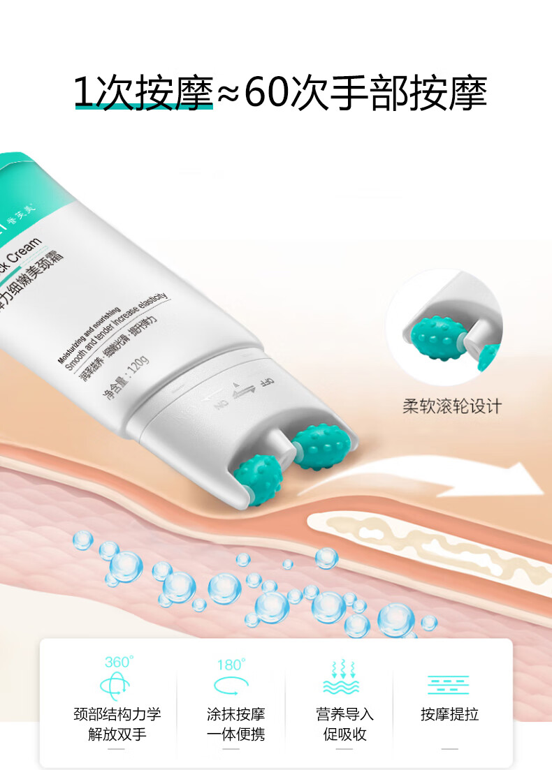 誉芙美双滚轮V型美颈霜颈纹霜按摩颈膜淡化脖子纹提拉滋润保湿颈部护理