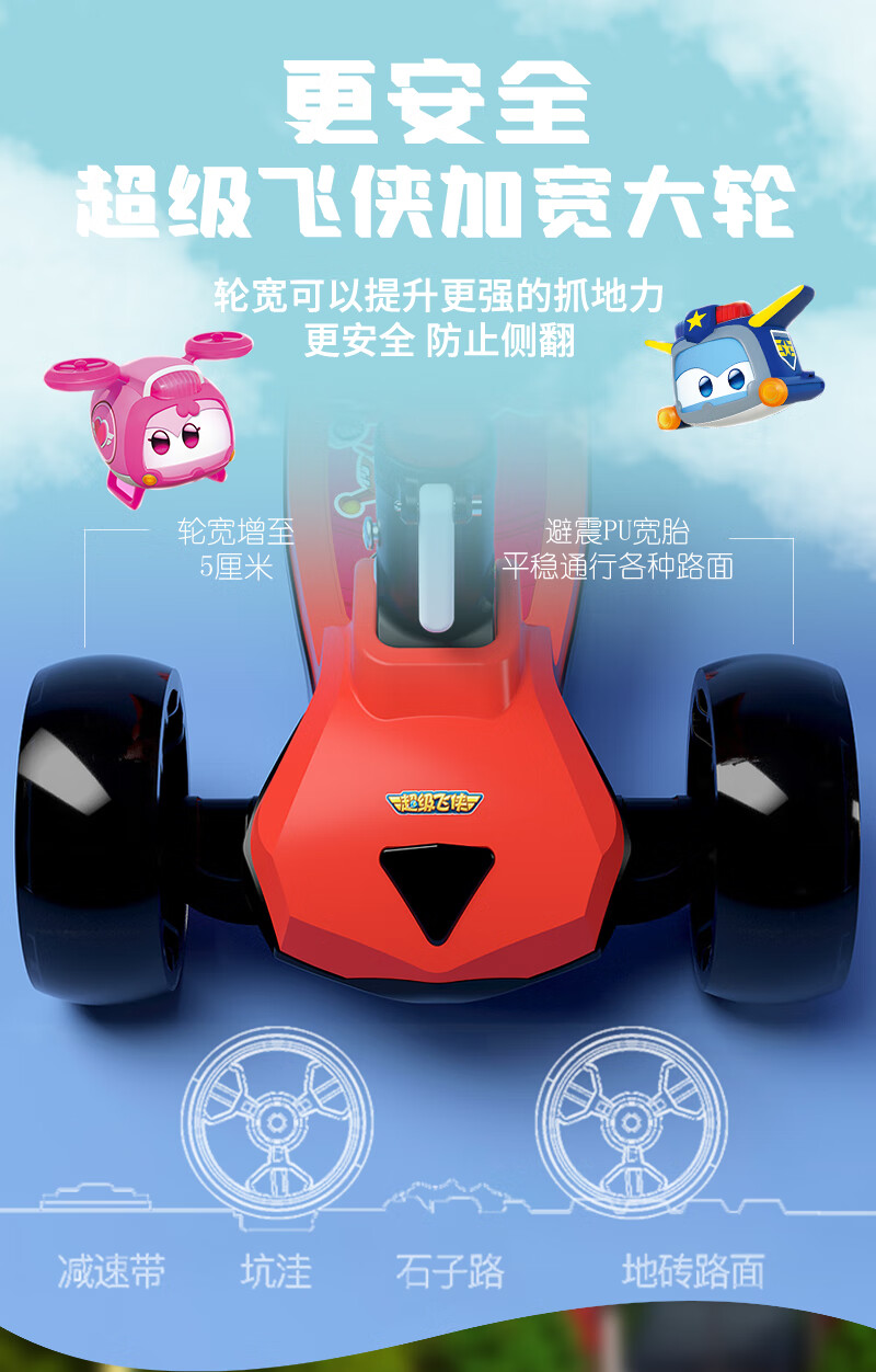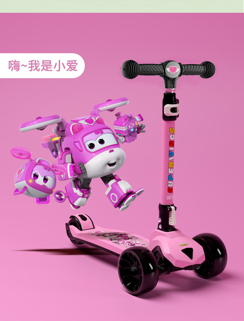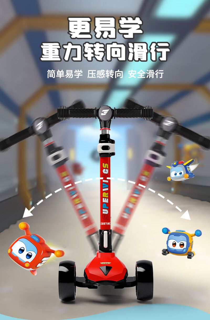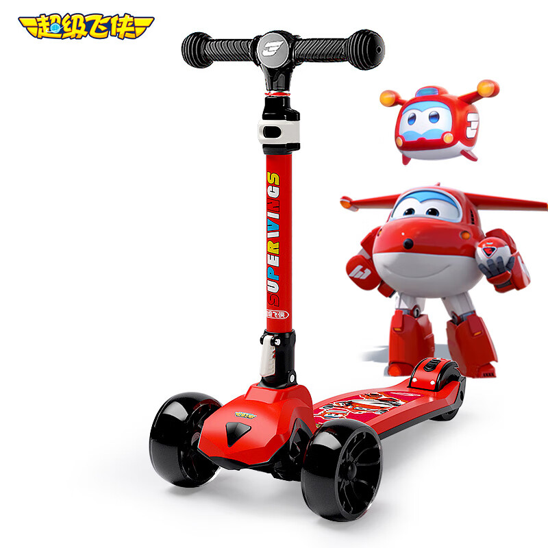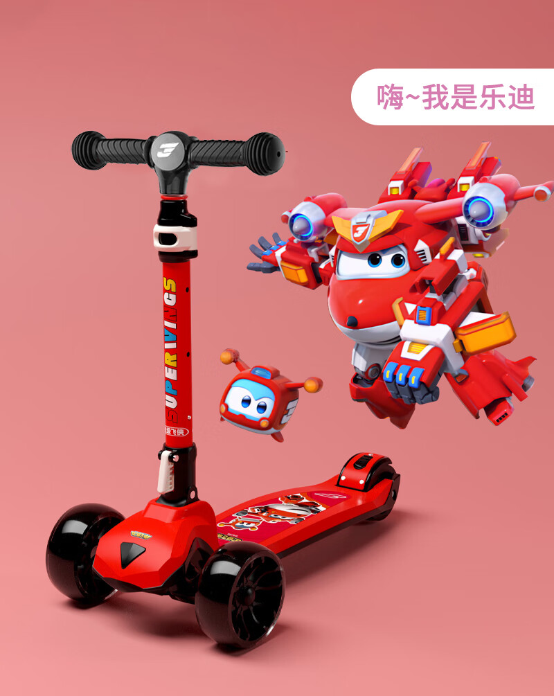 超级飞侠儿童滑板车2-6-12岁踏板车摇摆车滑滑车溜溜车代步PLUS版 乐迪红