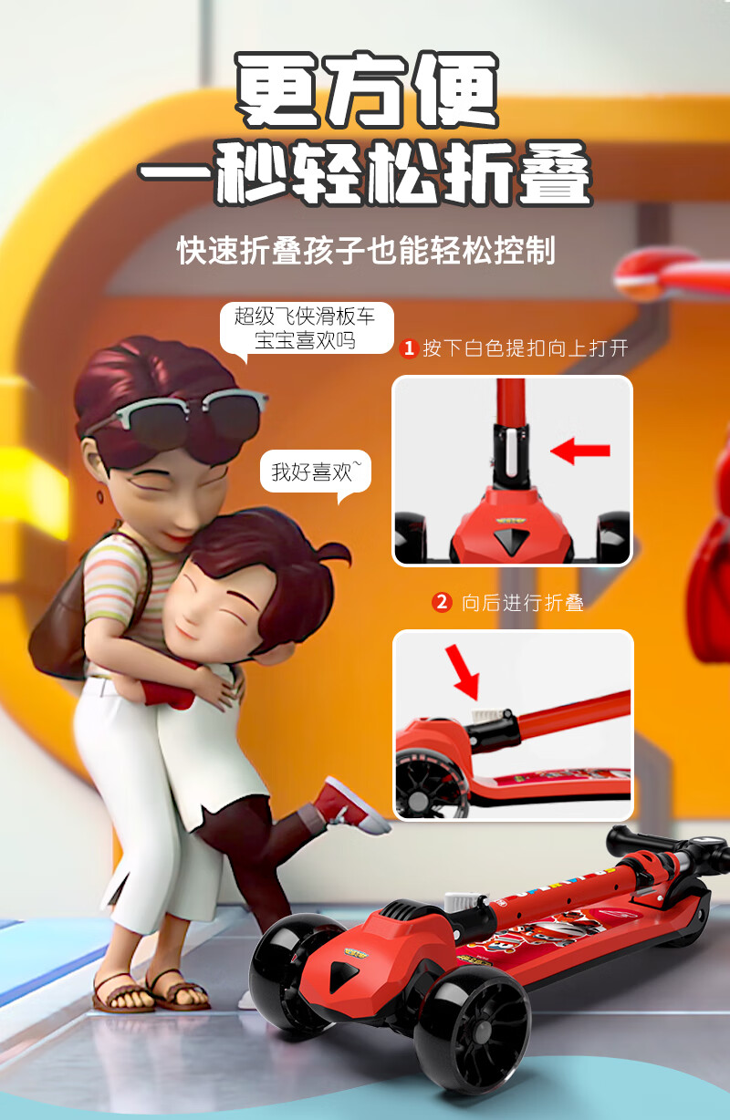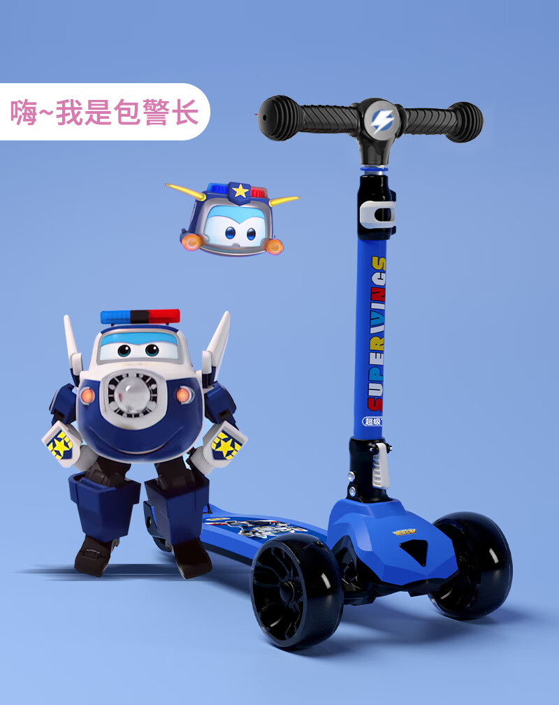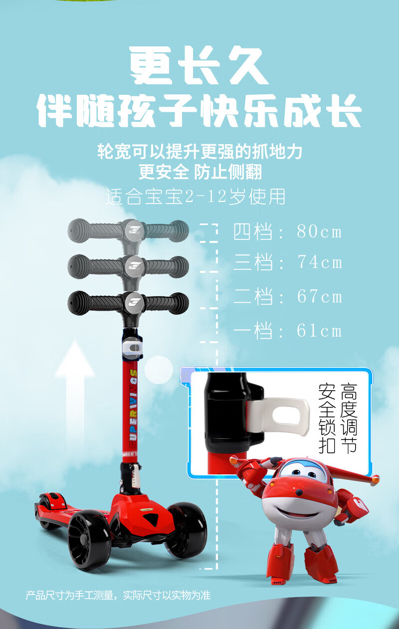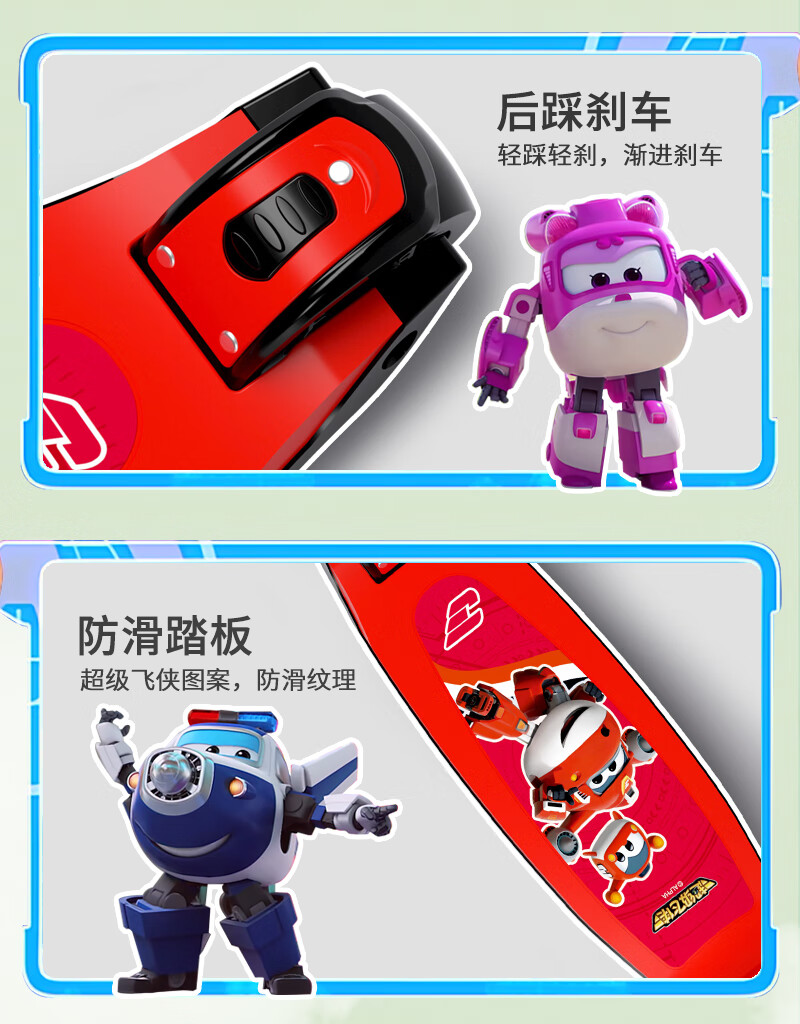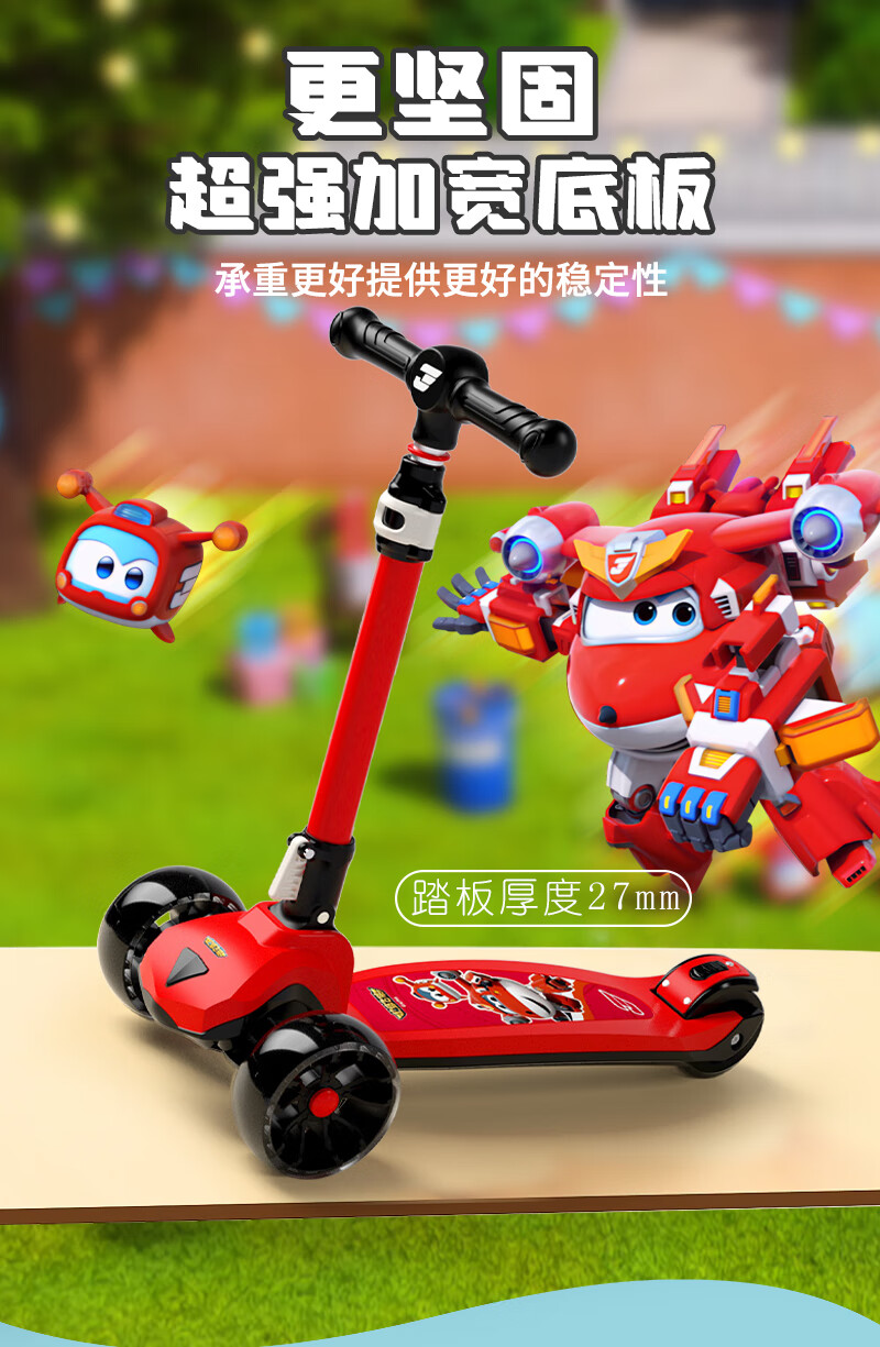 超级飞侠儿童滑板车2-6-12岁踏板车摇摆车滑滑车溜溜车代步PLUS版 乐迪红