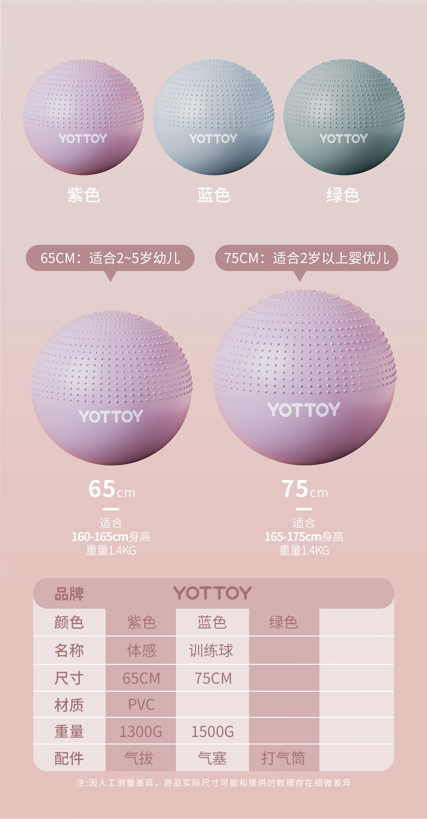 yottoy瑜伽球带刺颗粒加厚防爆大龙球儿童感统训练球宝宝按摩球-75m
