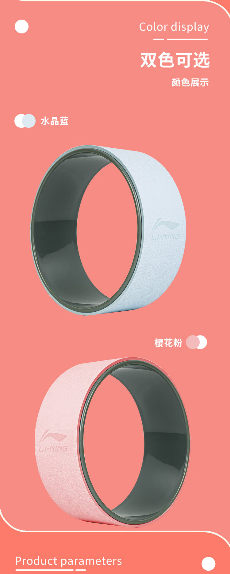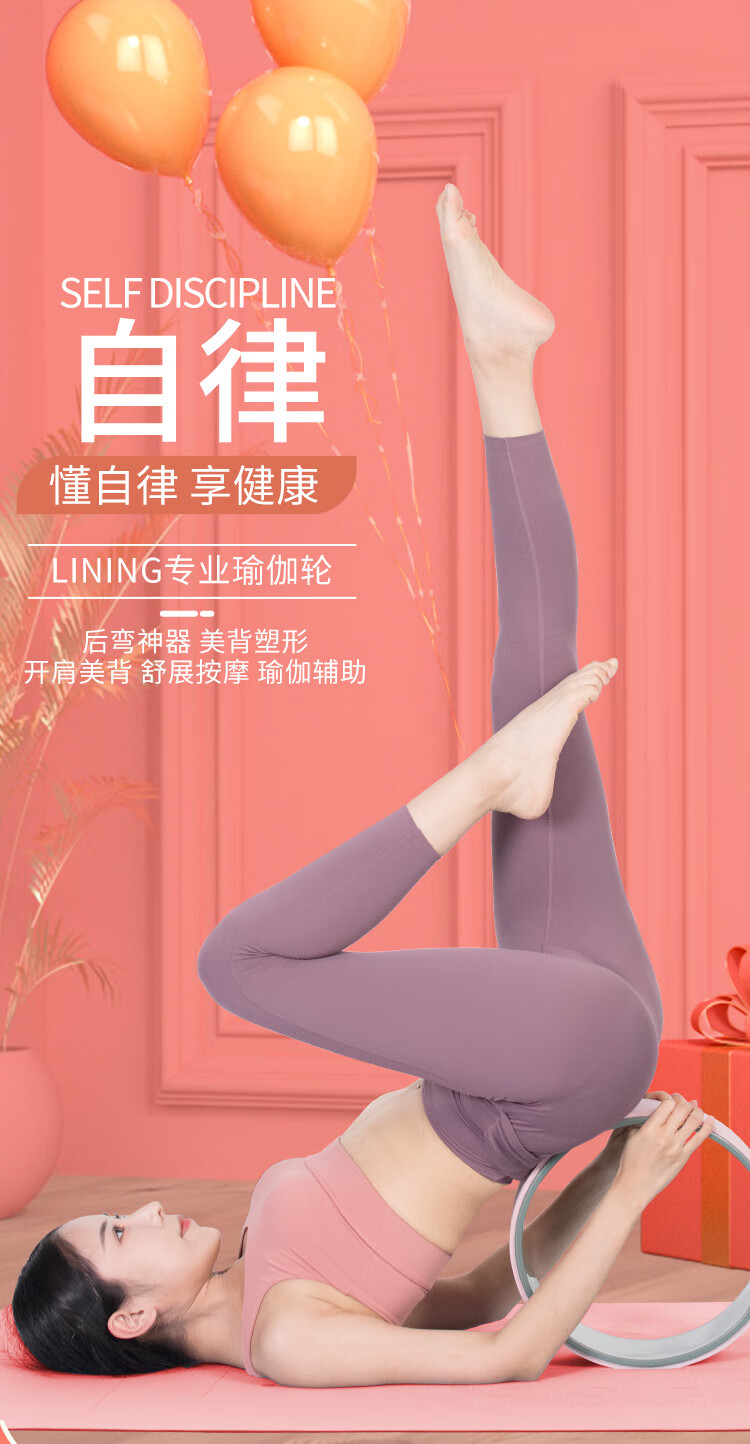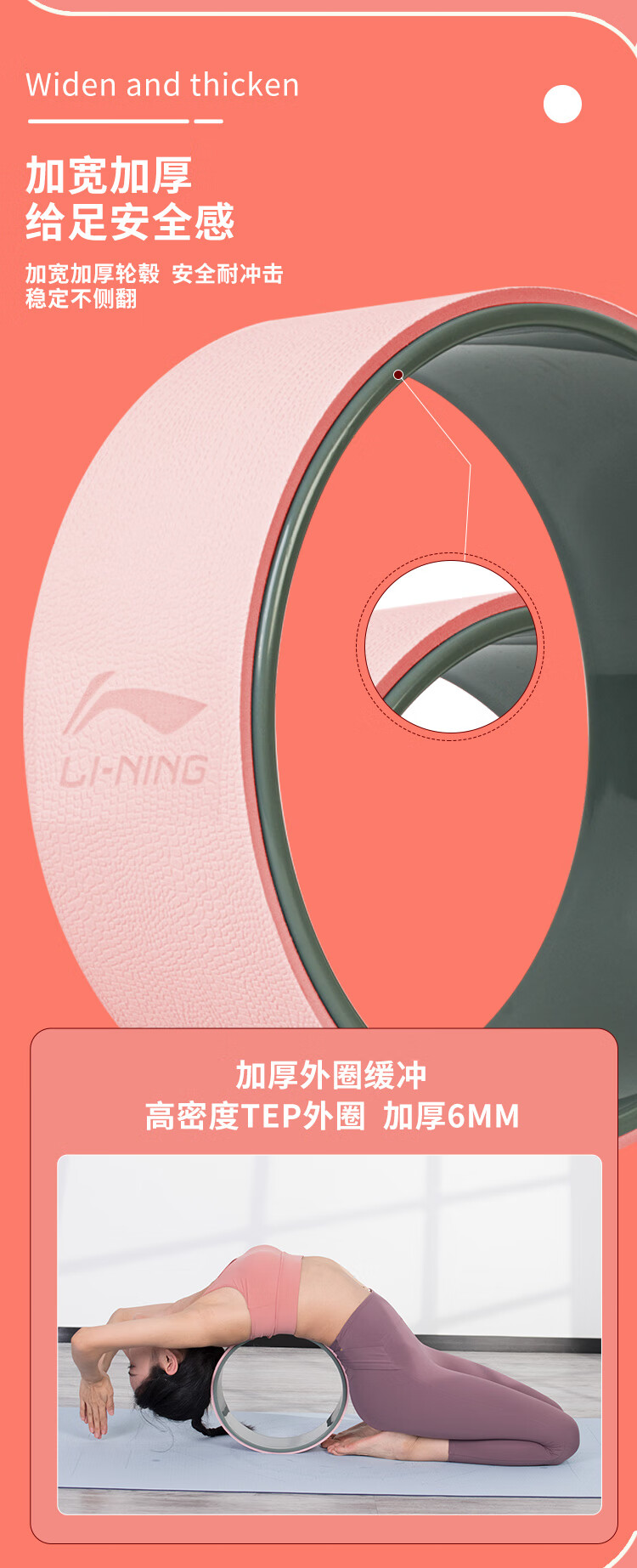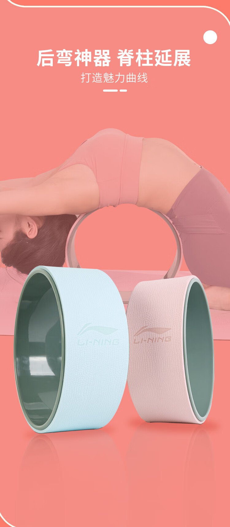 李宁瑜伽轮瑜伽圈瑜伽环普拉提圈器材开背开肩美背神器滚背健身拉筋练背507粉