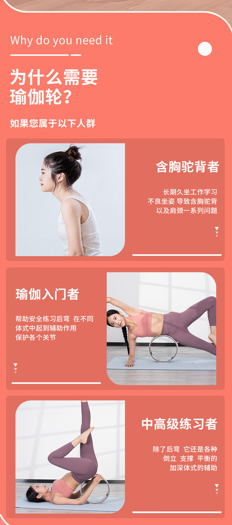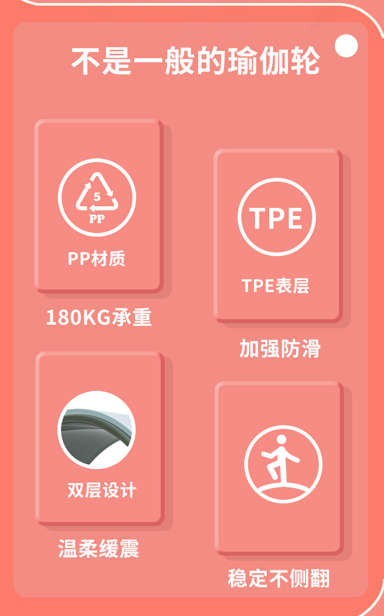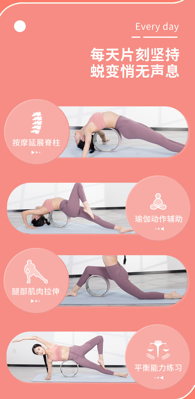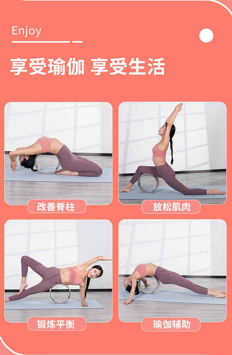 李宁瑜伽轮瑜伽圈瑜伽环普拉提圈器材开背开肩美背神器滚背健身拉筋练背507粉