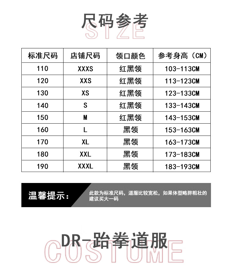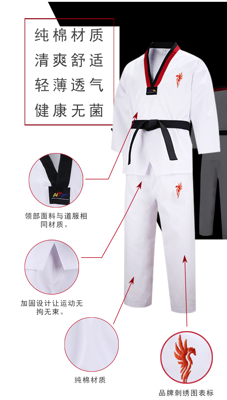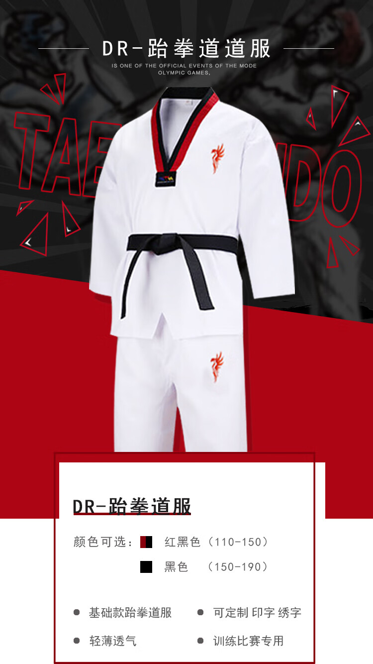 Dracula跆拳道服儿童成人初学者训练服纯棉表演服品势训练竞技服跆拳道教练服定制 L码