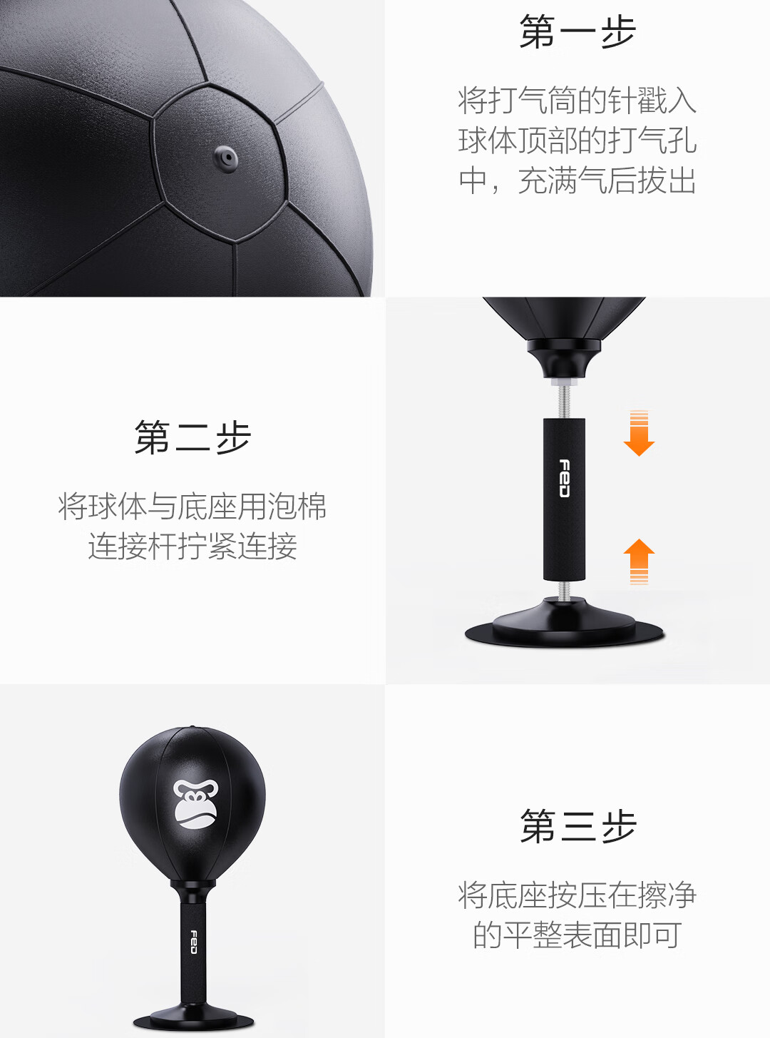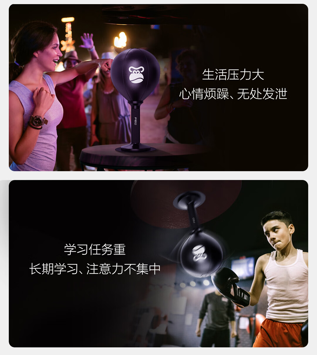 飞尔顿(FEIERDUN)拳击速度球儿童桌面拳击靶反应训练器不倒翁成人儿童解压发泄球