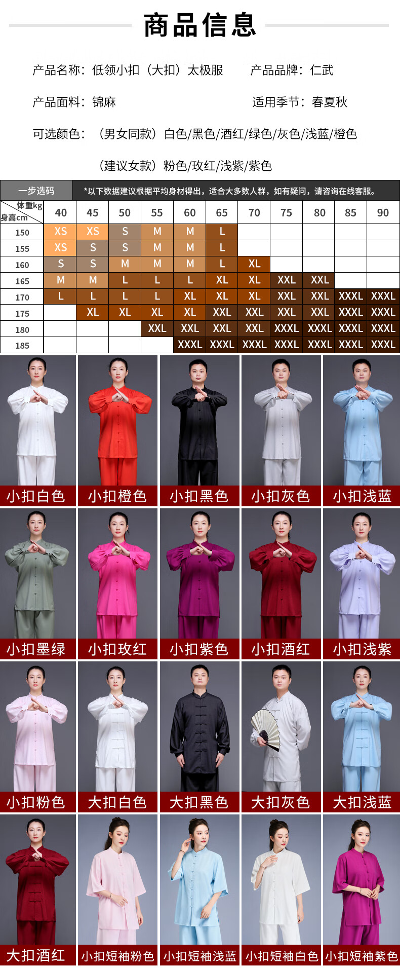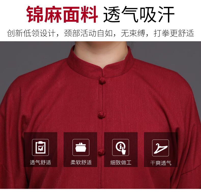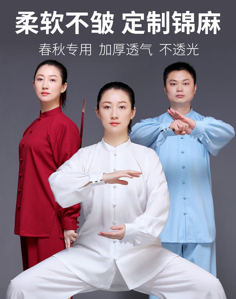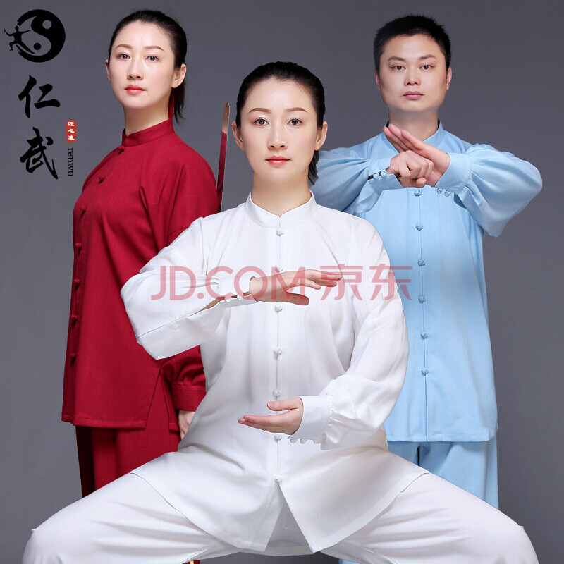 仁武白色XL太极服女棉麻中国风中老年太极拳练功服装武术男训练比赛小扣