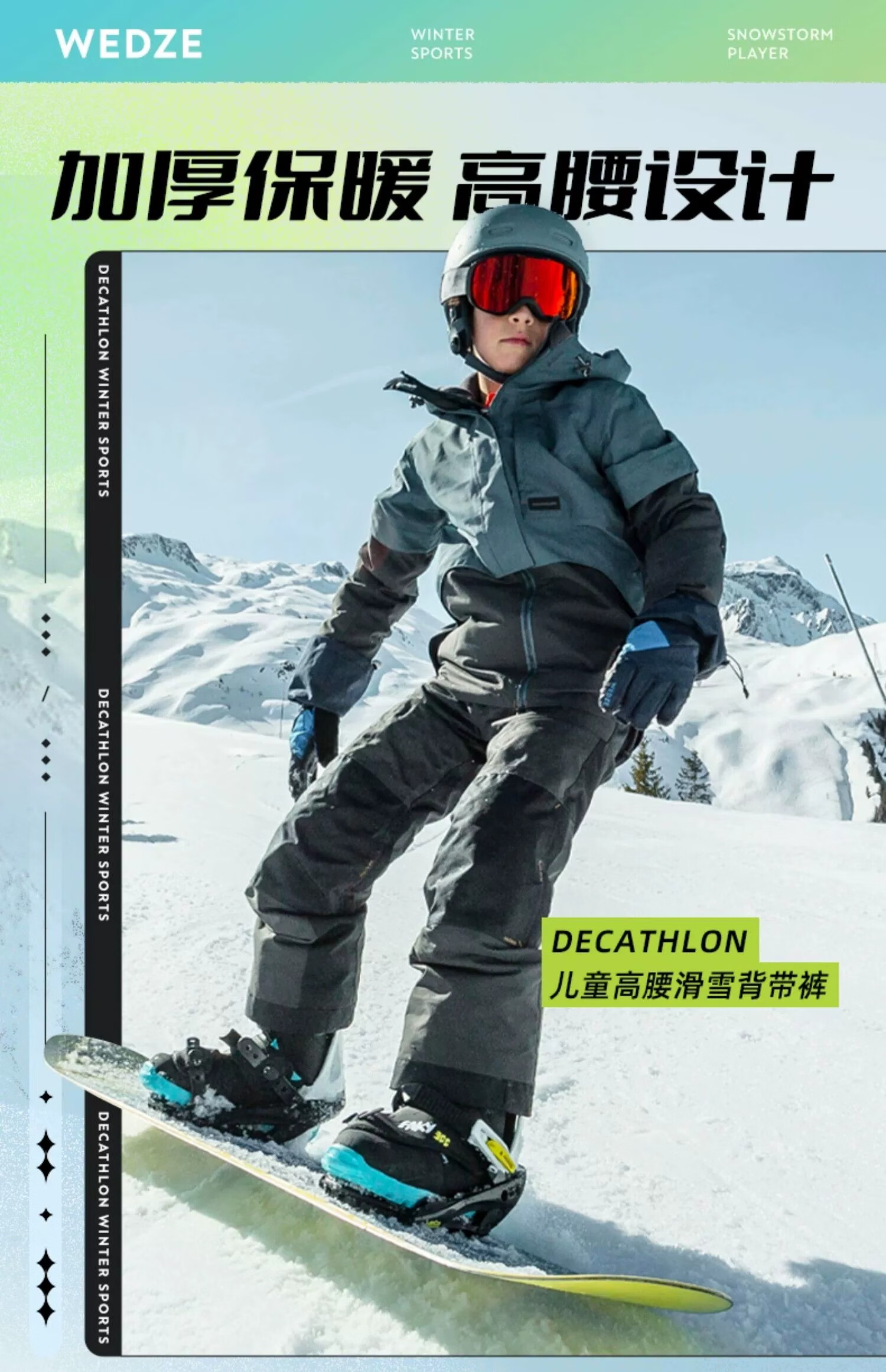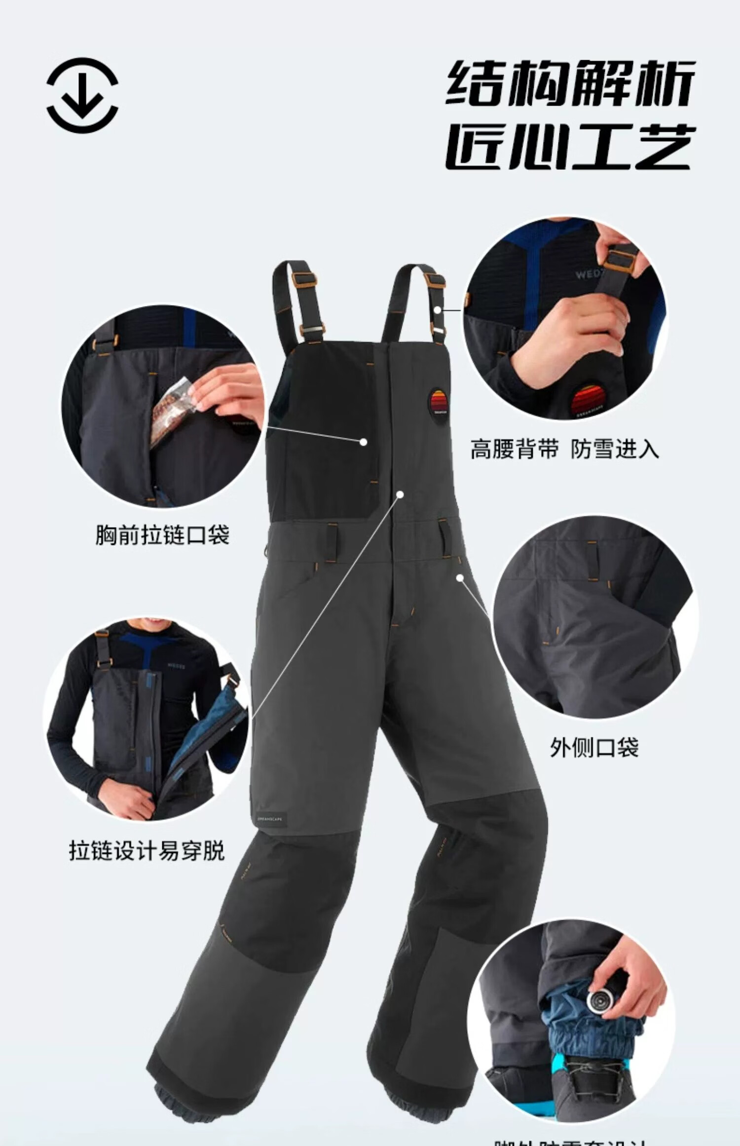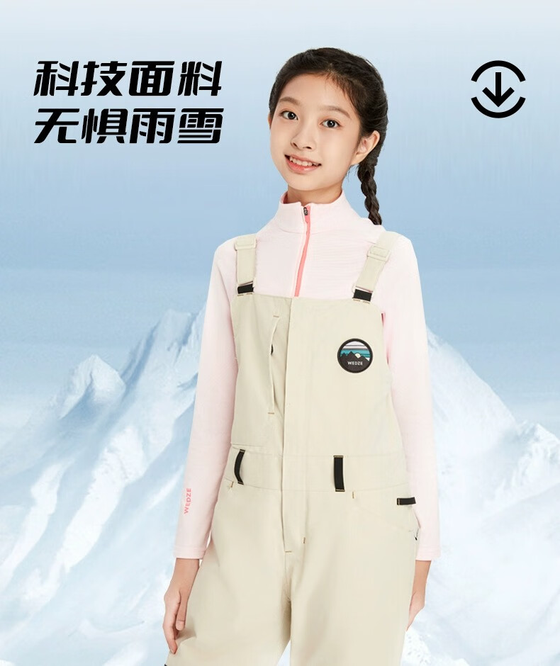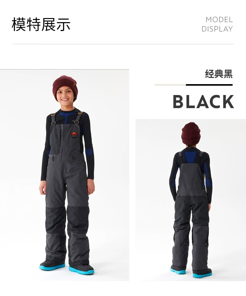 迪卡侬滑雪裤儿童背带连体雪裤防水保暖易穿脱WEDZE3黑色XL-2917141