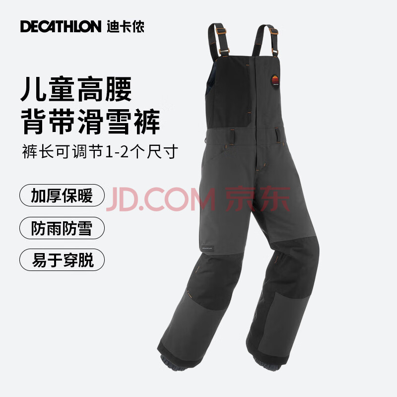 迪卡侬滑雪裤儿童背带连体雪裤防水保暖易穿脱WEDZE3黑色L-2917140
