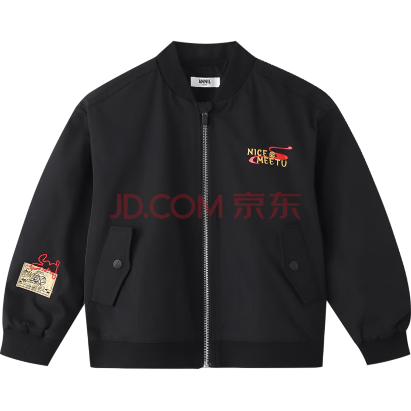 安奈儿(Annil)安奈儿童装男童夹克外套2023年春装国风印花棒球服上衣黑色150