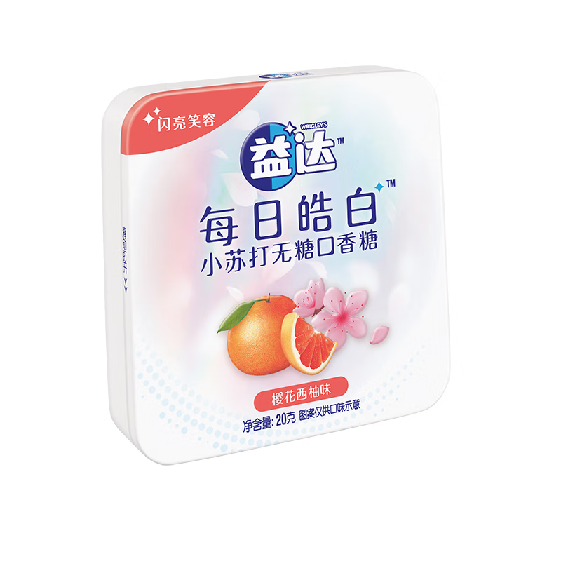 益达(Extra)无糖口香糖 每日皓白橙花白桃味20g/盒 零食 清新口气糖