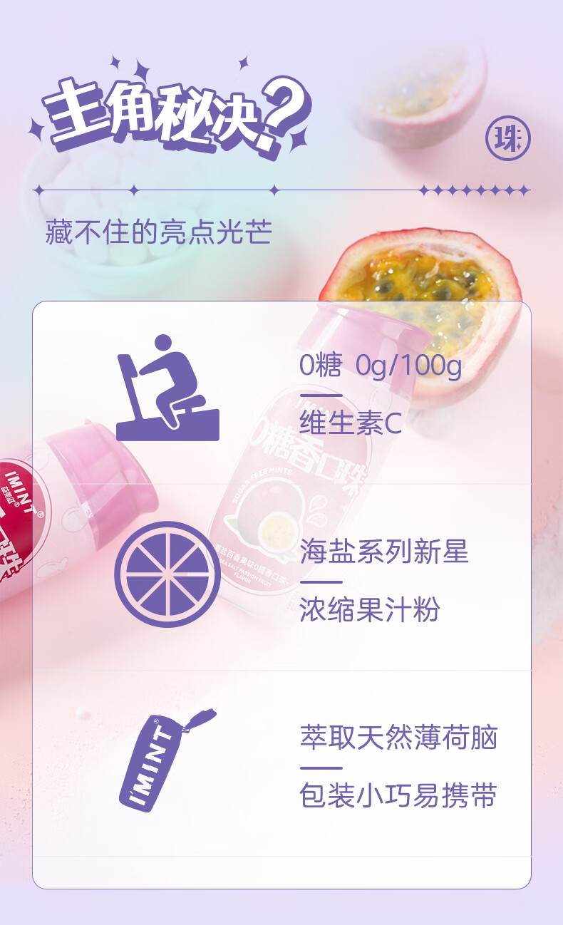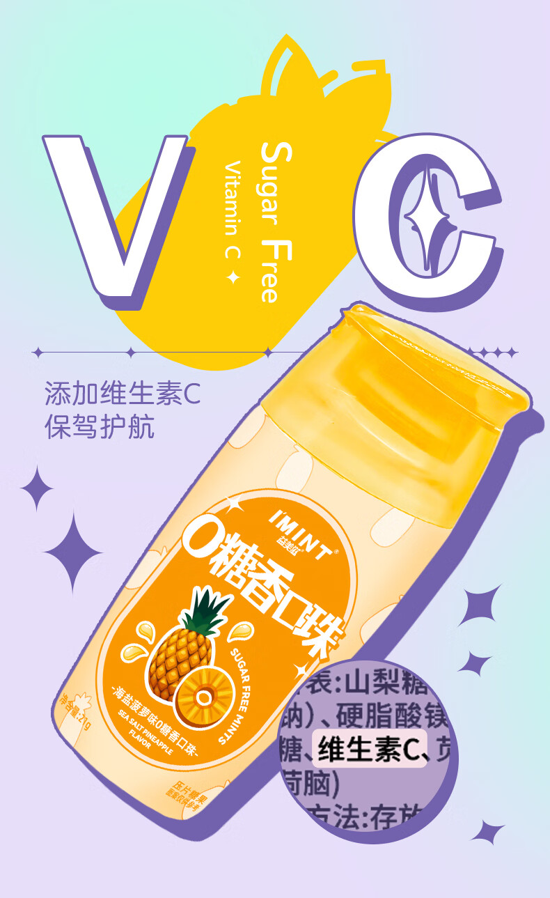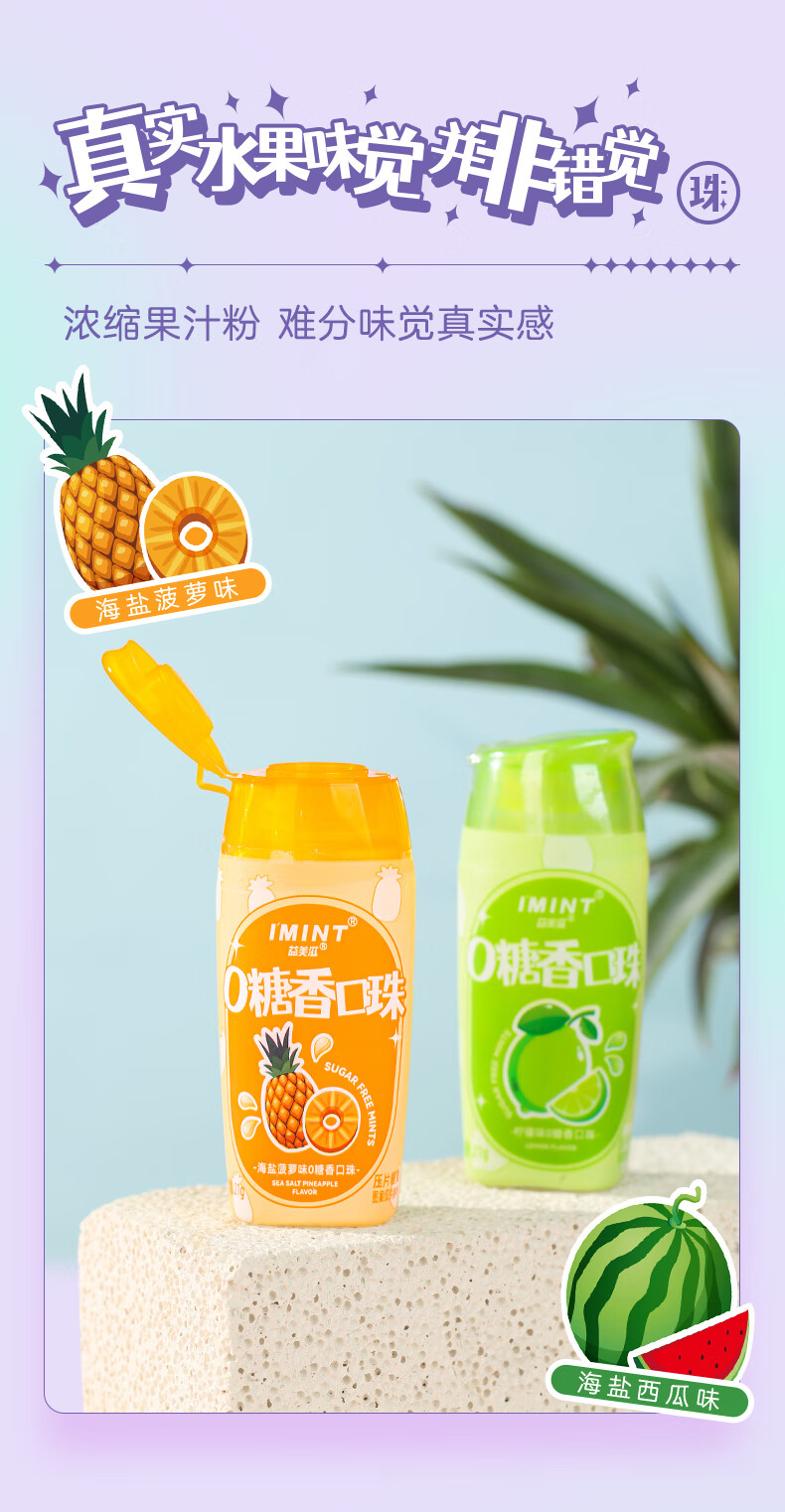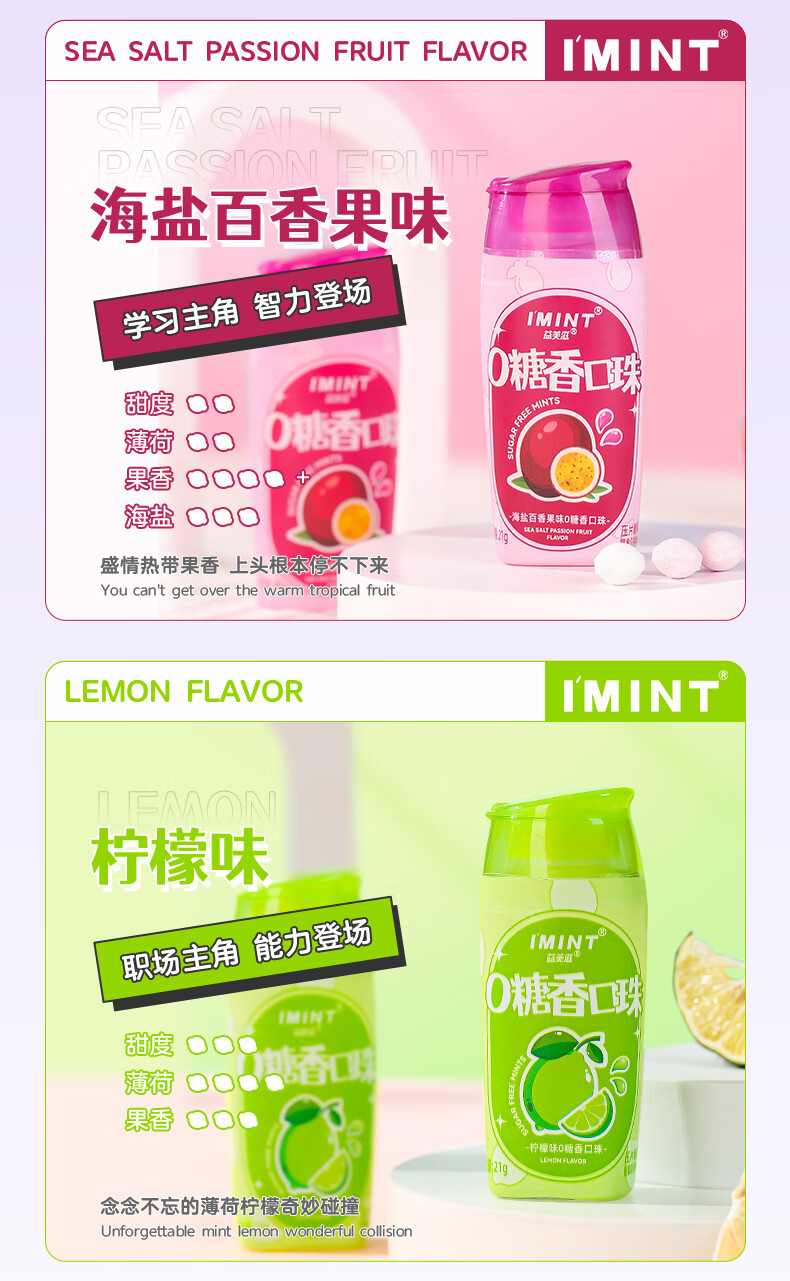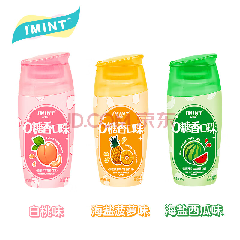 I'MINT益美滋无糖薄荷糖口香糖清新口气(21g*3瓶)休闲零食糖果混合口味