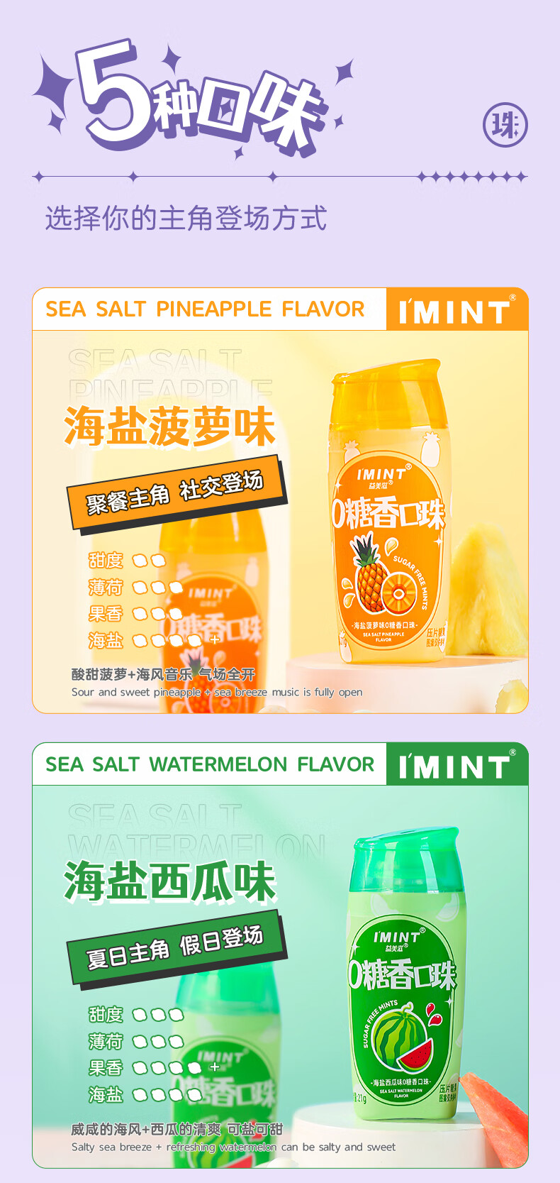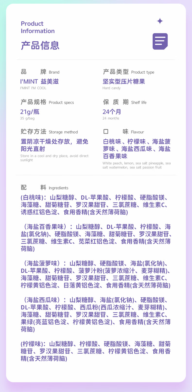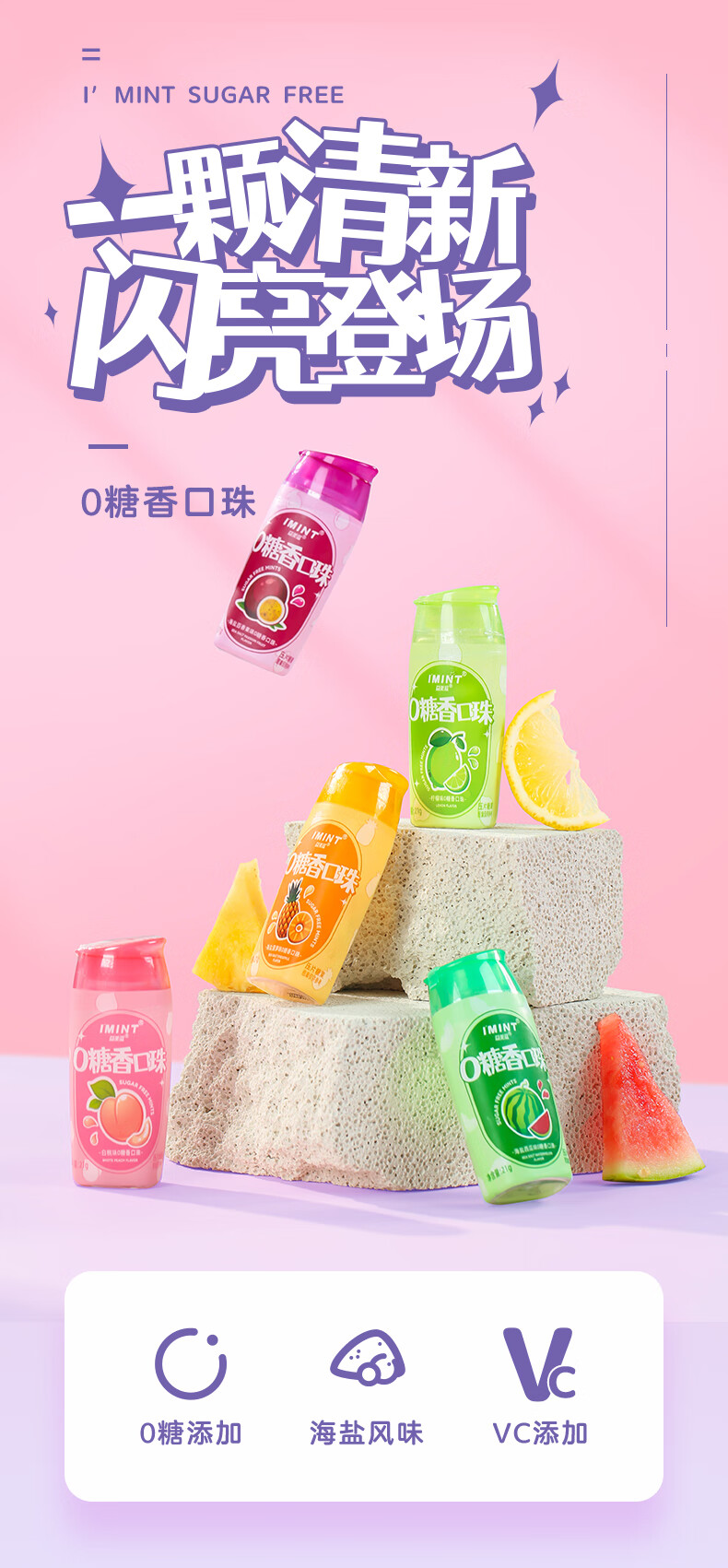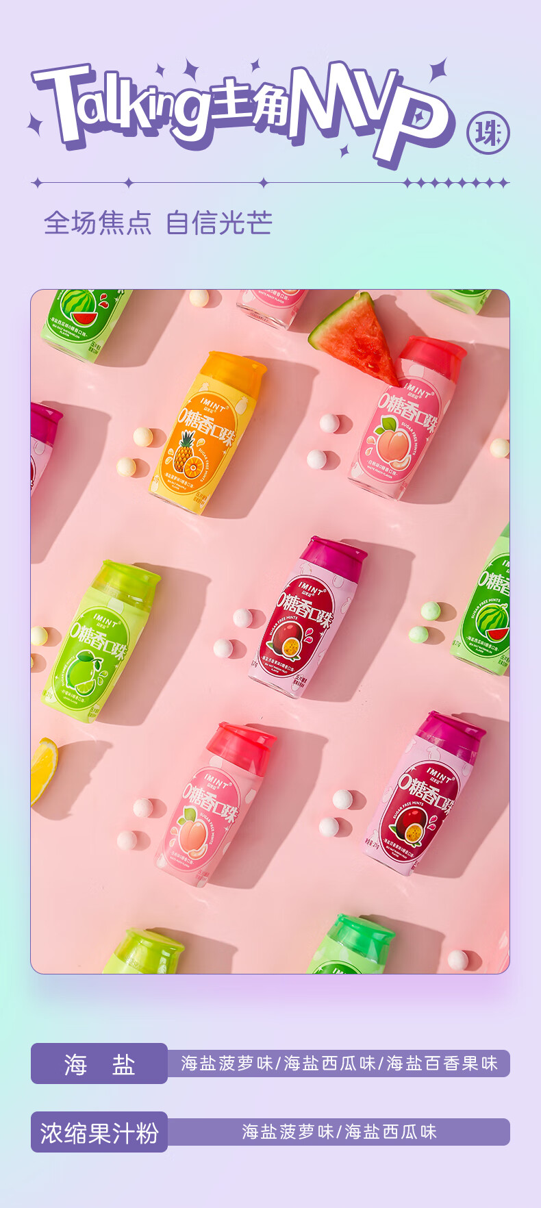 I'MINT益美滋无糖薄荷糖口香糖清新口气(21g*3瓶)休闲零食糖果混合口味